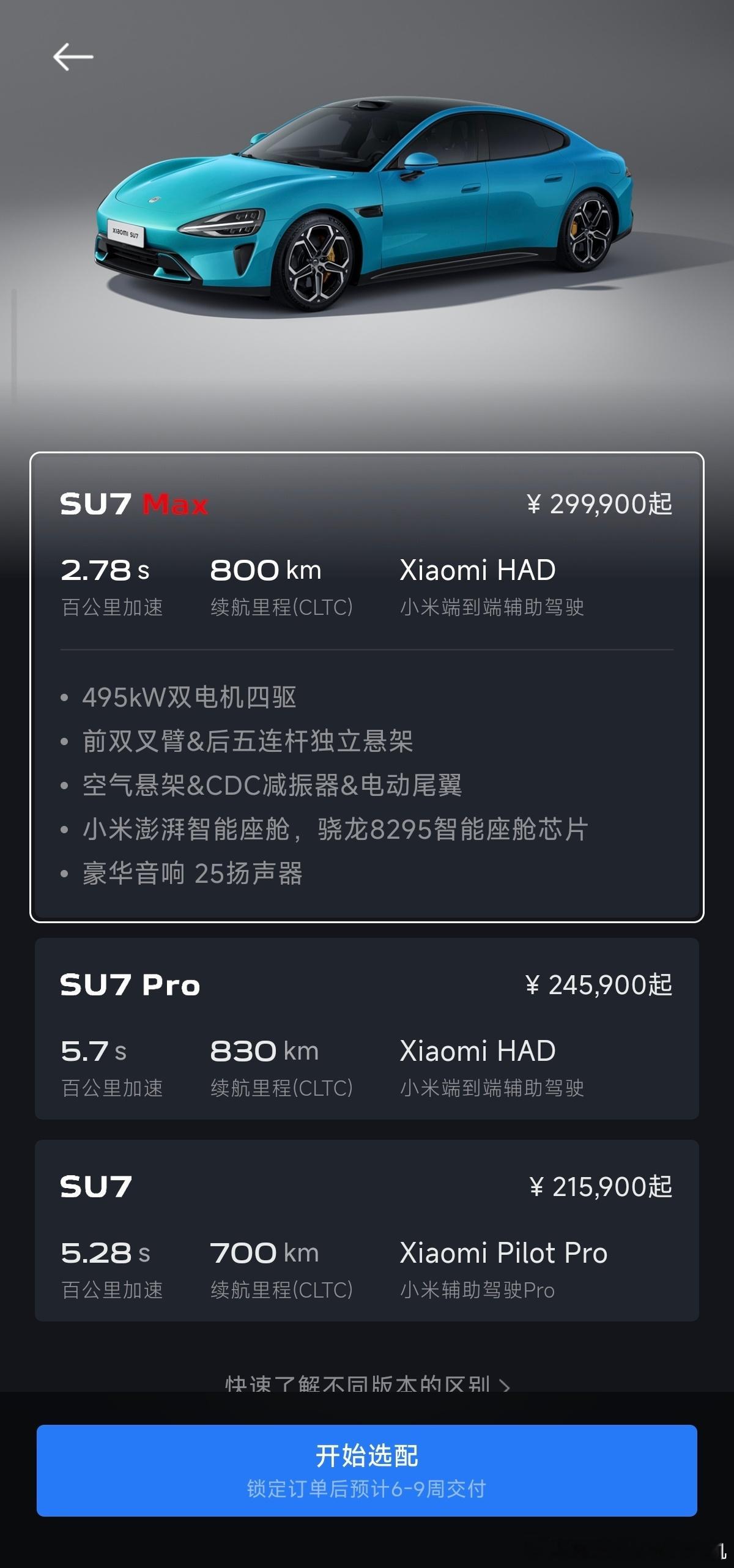 小米产能难道真起飞了?还是没人买了?SU7:锁单后预计29~32周交付(不变)SU7 Pro:锁单后预计6~9周交付(缩短22周)SU7 Max:锁单后预计6~9周交付(缩短20周)缩短20周还要多