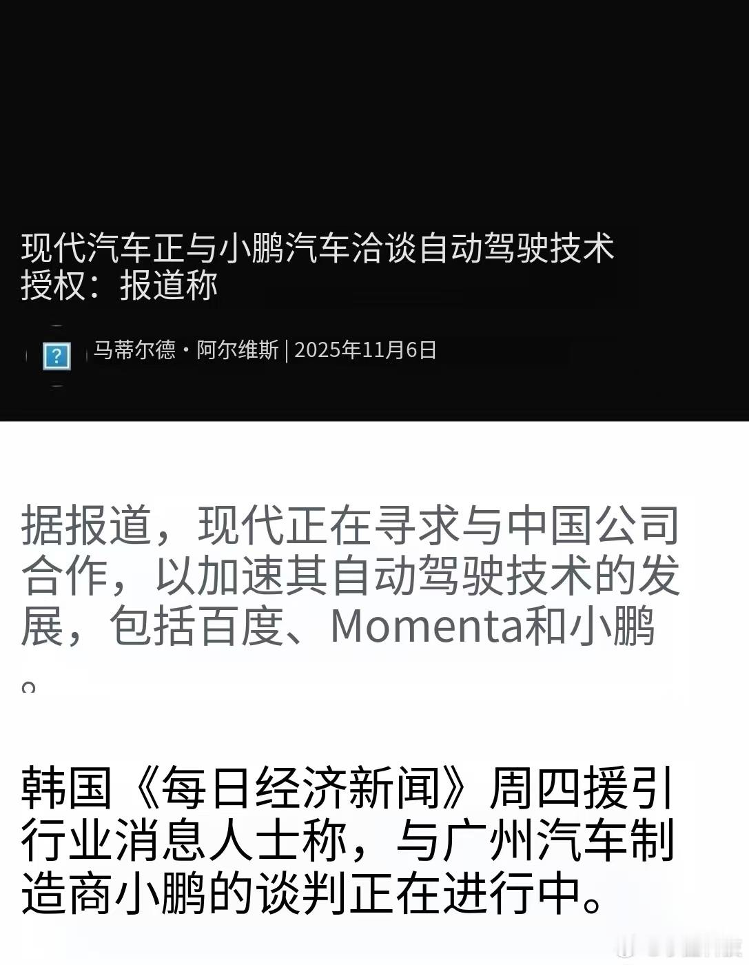 小鹏运作的不错,先前跟大众电子技术合作,现在又是给现代汽车智驾授权。