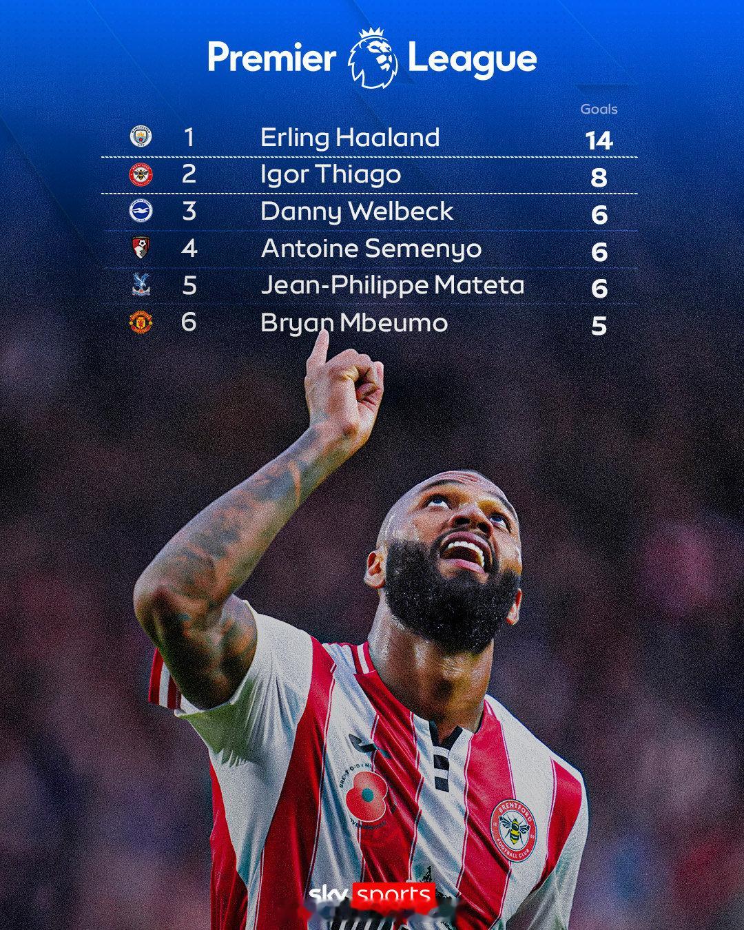 【英超射手榜最新排名】一个怪物,与五名状态火热的前锋!