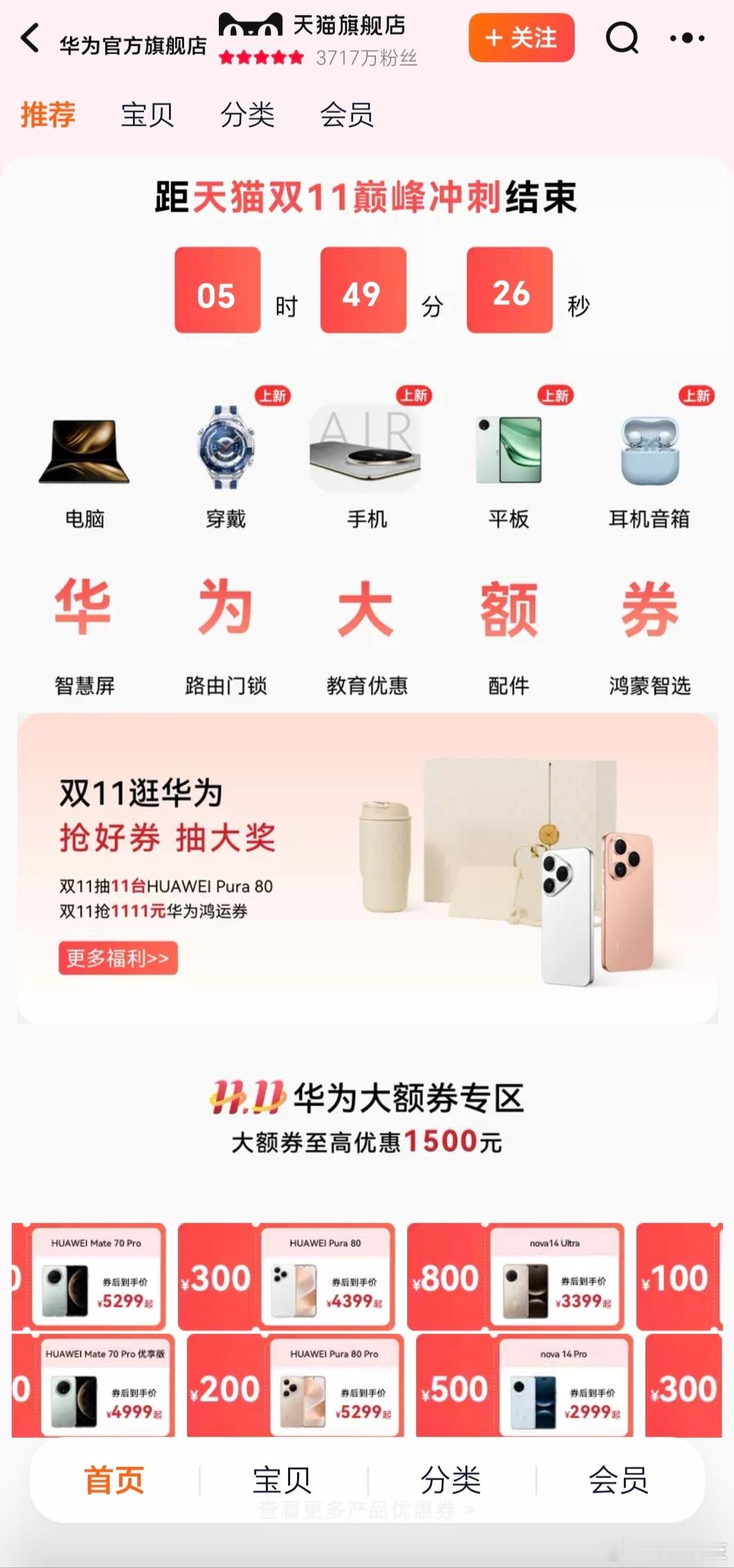 双11冲刺48小时,天猫数码品类真的太香了!这几天我一直在天猫旗舰店蹲点,像华为MatePad、戴尔轻薄本、索尼降噪耳机、荣耀手机都在疯狂直降,官方补贴加上品类券,分期免息也安排上了,真的省到让人不敢相信。国家补贴、百亿补贴一起上,实打实的优惠,感觉现在下单就是最划算的时刻!如果你正好想换新手机、平板或者耳机,别犹豫,趁着红包、限时秒杀、直降福利最后冲一波!你们今年都准备买什么?