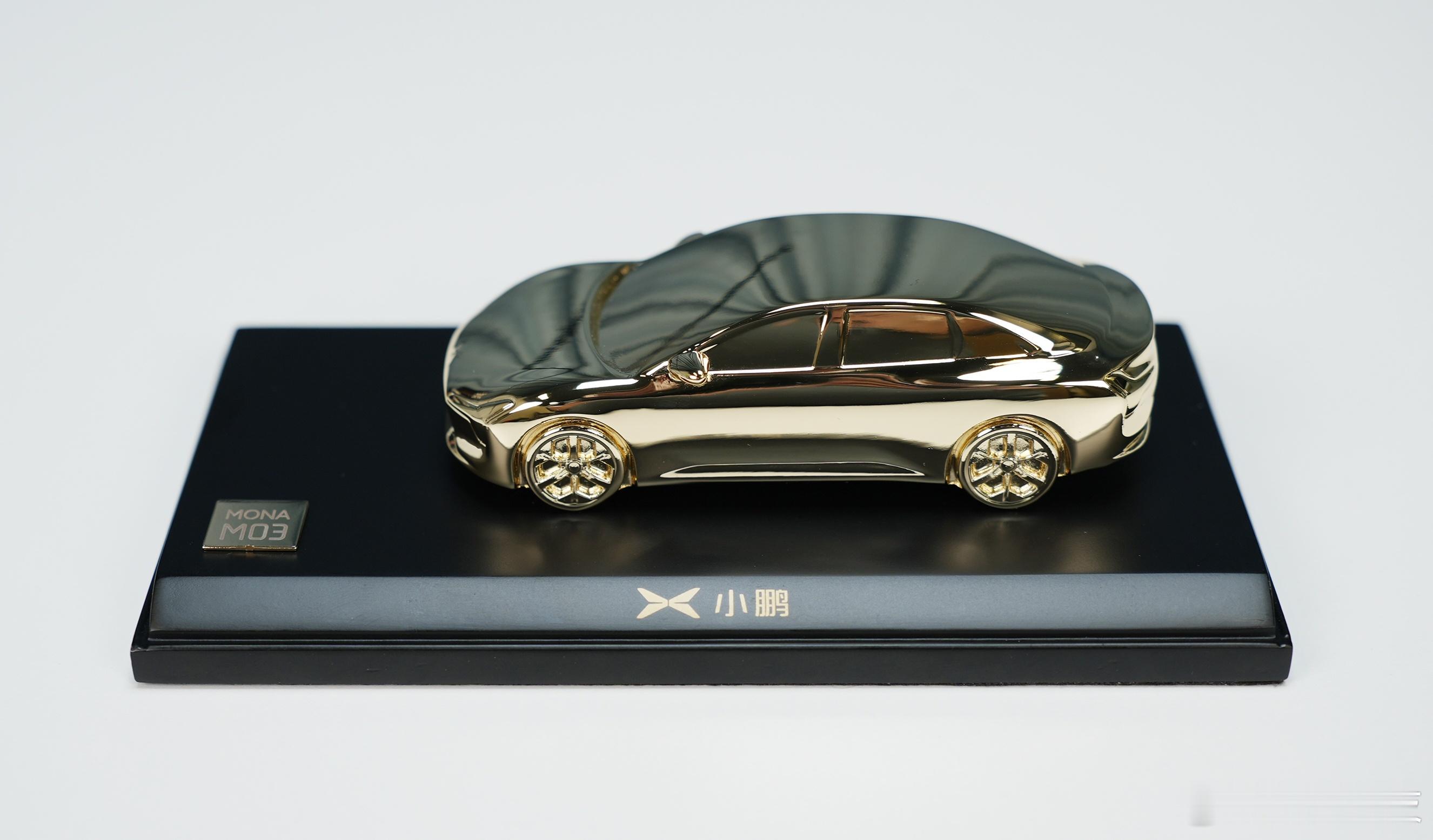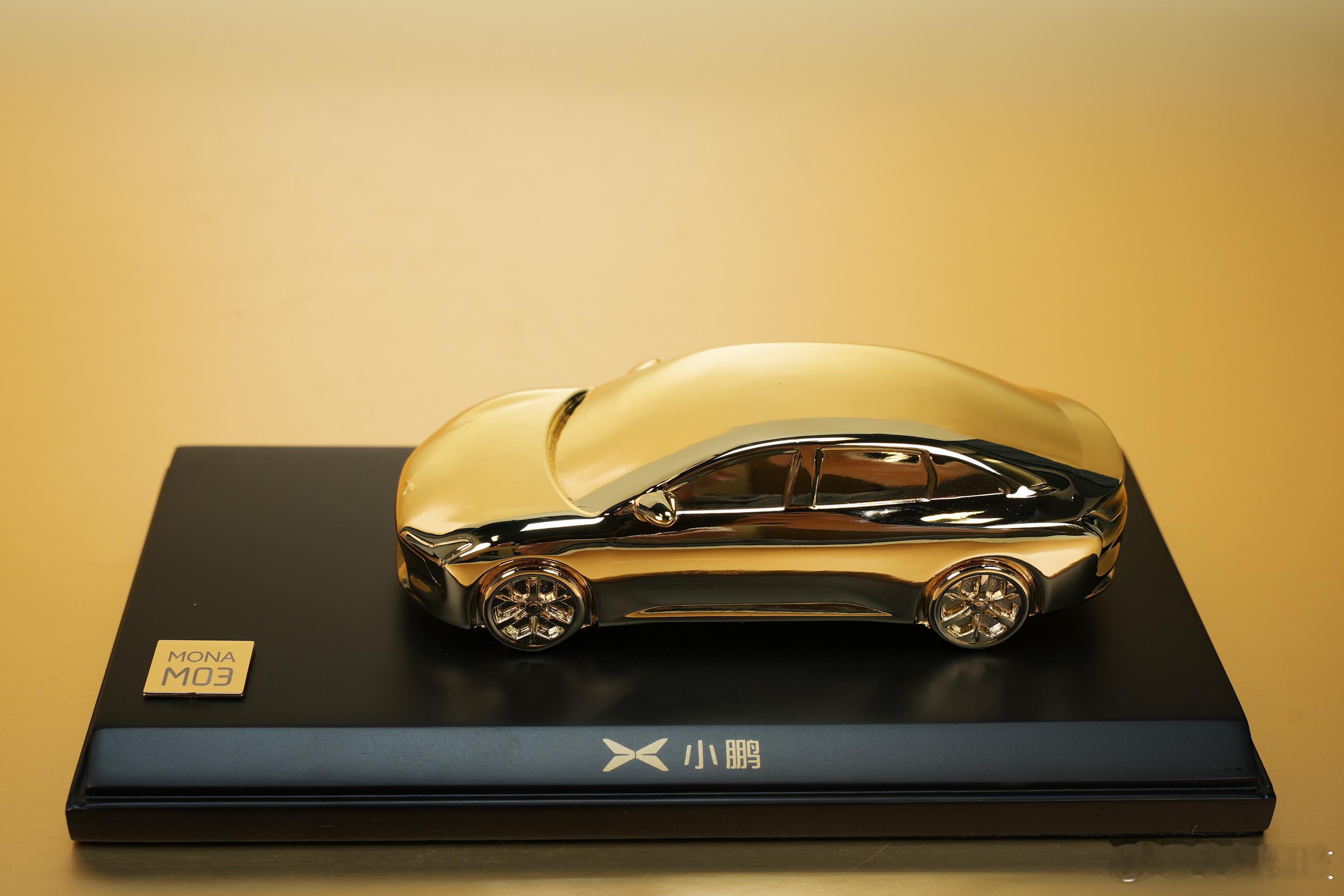 小鹏MONA车主福利啊,居然收到了小鹏 MONA 20 万台纪念限定金车模,24K真金电镀,1:43!帅不帅?!😎M03上市14个月,销量破20万台,这背后藏着的是市场对M03的高度认可,更是小鹏在技术研发和生产制造上的硬实力!作为车主很自豪!