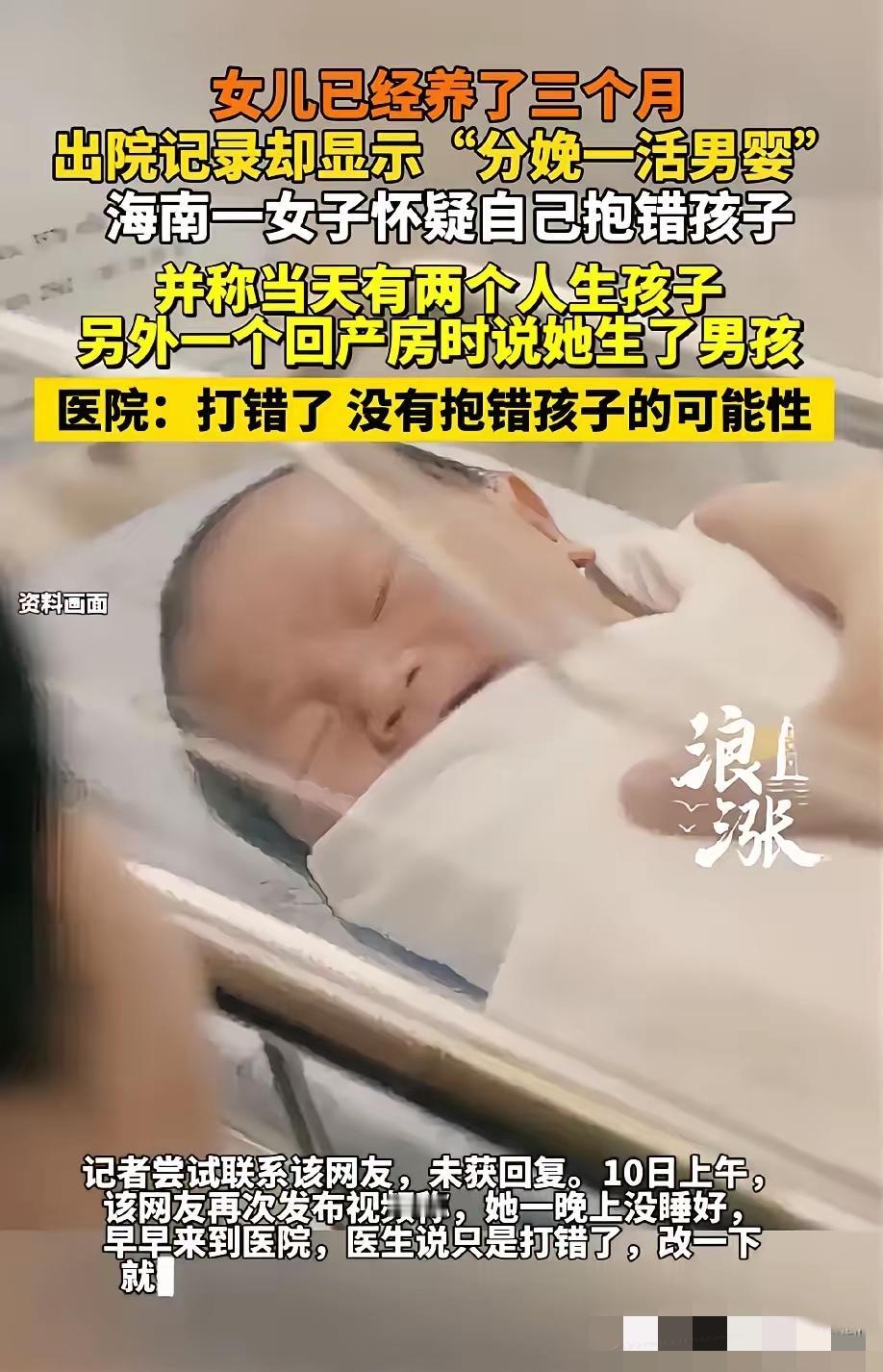 海南海口,女子刚生完女儿3个月,意外发现出院记录上记载的竟是分娩了一男婴。女子突然想到,她分娩时同病房分娩的就是一个男孩。女子怀疑医院给她抱错了孩子 医院轻飘飘的“改一下就行”,根本安抚不了家长的焦虑——生孩子是天大的事,医疗文书岂能如此马虎?这不是简单的笔误,是对患者知情权的漠视,更是医疗责任心的缺失。 民法典早有规定,医疗机构过错造成患者损害就得担责,亲子鉴定费只是底线。真正该补的,是医院的流程管控和责任意识。你觉得除了亲子鉴定,医院还该做些什么来弥补这份信任危机?
