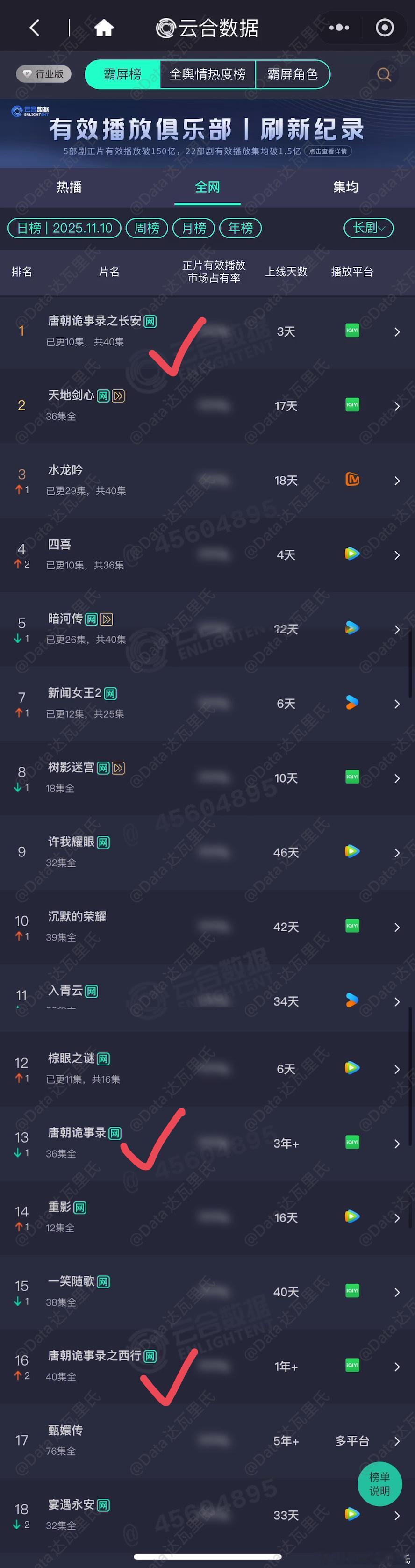 开播后,爱奇艺app工iOS日下载量从3万多,飙升到了近8万 近三个月两个峰值很明显的生万物,和现在的唐诡3都是8万上下。唐诡三季霸榜站内搜索前3,也进了云合日榜13和16~