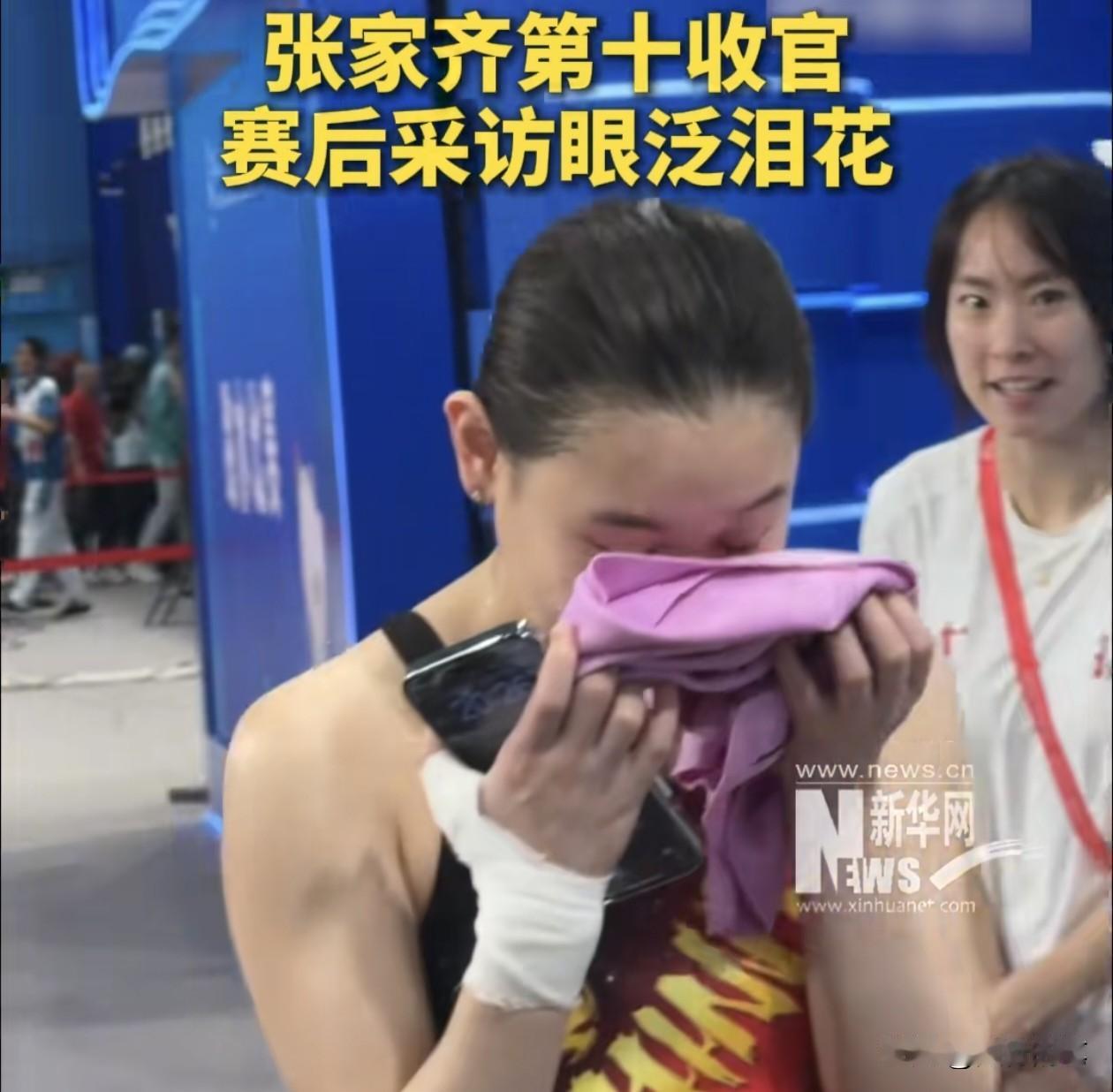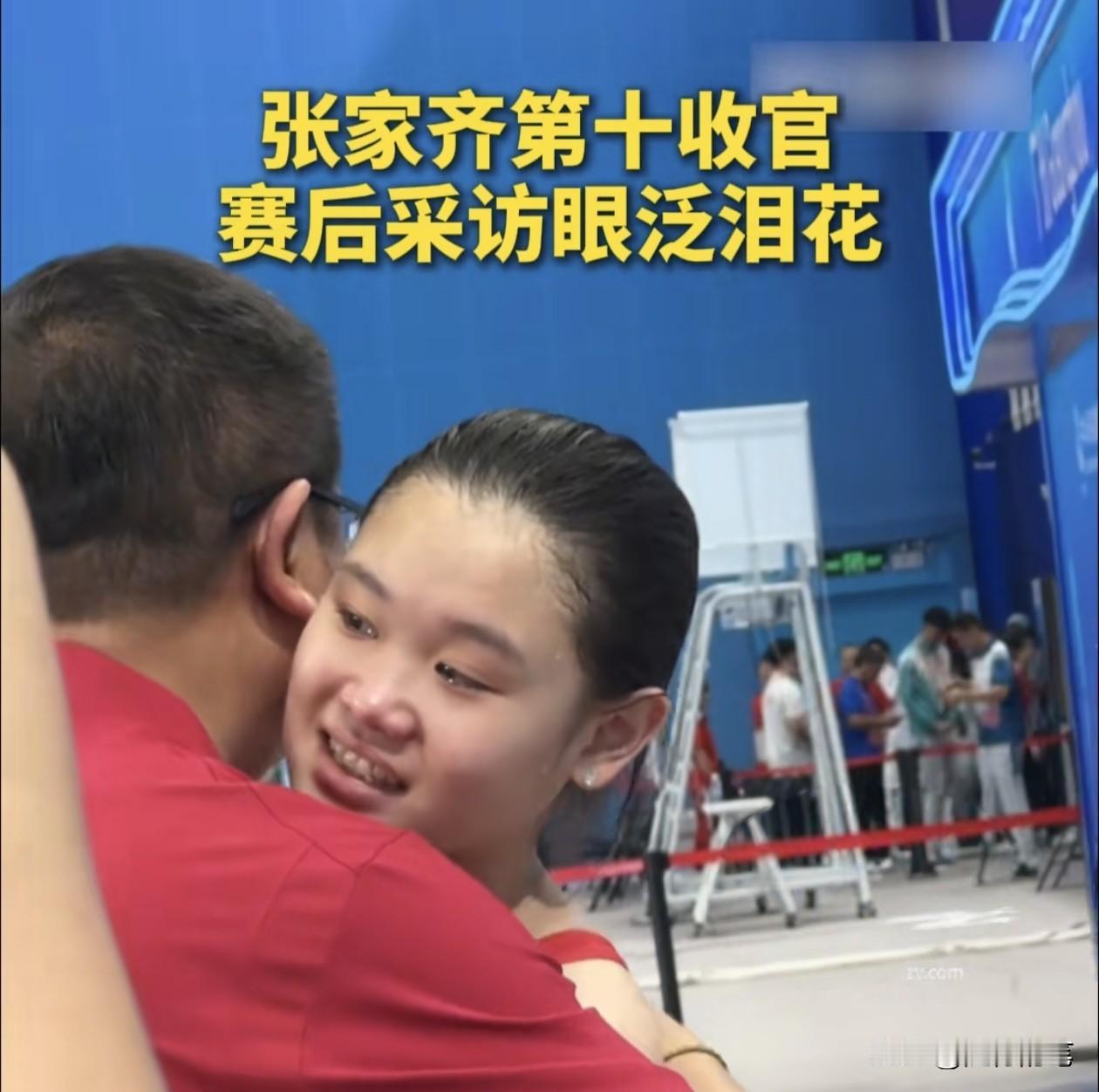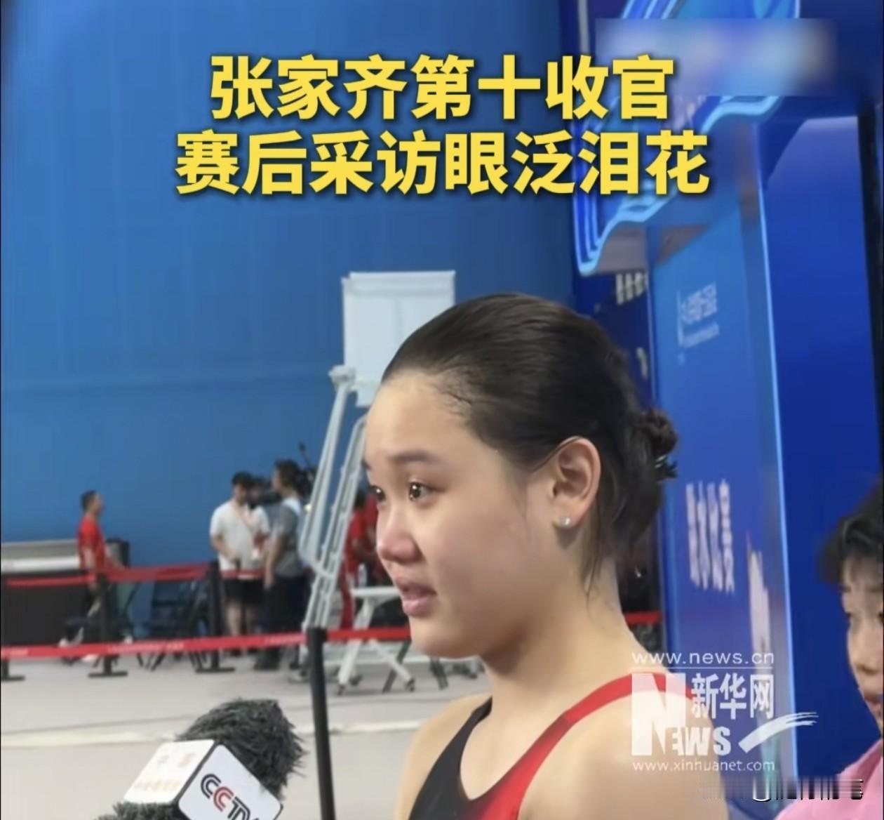 张家齐哭了。 这次全运会张家齐颗粒无收,最后的单人项目仅仅拿到第十名。 别看平时张家齐很乐观开朗又通情达理,但是毕竟是运动员,对于成绩的渴望也是很强烈的。无奈巅峰已过,虽然平时不说,但是在张家齐内心肯定是有遗憾的,这次全运会是张家齐的第三次全运会了,也很可能是她的最后一届全运会了,所以在赛后采访时,张家齐也难免会感慨,一时忍不住眼泪汪汪的,记者也看在眼里,采访结束后也抱了抱张家齐。