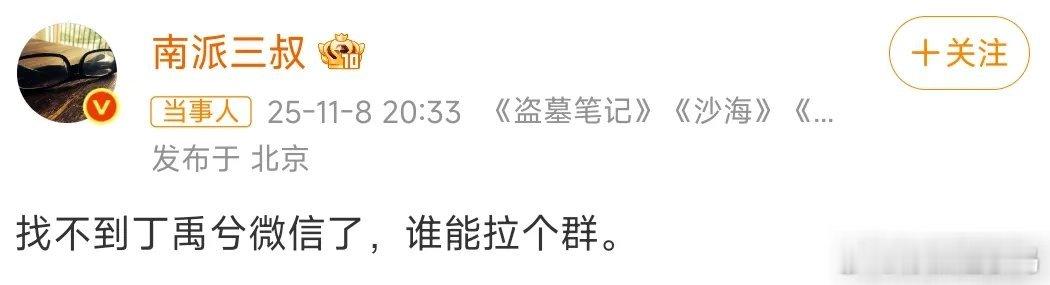 南派三叔这是怎么了?大晚上突然要联系丁禹兮!大家正追丁禹兮和宋茜主演的《山河枕》追得火热,结果南派三叔晚上八点多突然在社交平台“在线摇人”,说找不到丁禹兮的私人联系方式了,想让人帮忙拉个群。这话没头没尾的,让人有点摸不着头脑。莫非是南派三叔看《山河枕》热播,有新本子想找丁禹兮合作?也有人提醒,或许是《南部档案》有新动向?毕竟丁禹兮之前拍过这部作品,当时应该和南派三叔有过联系。