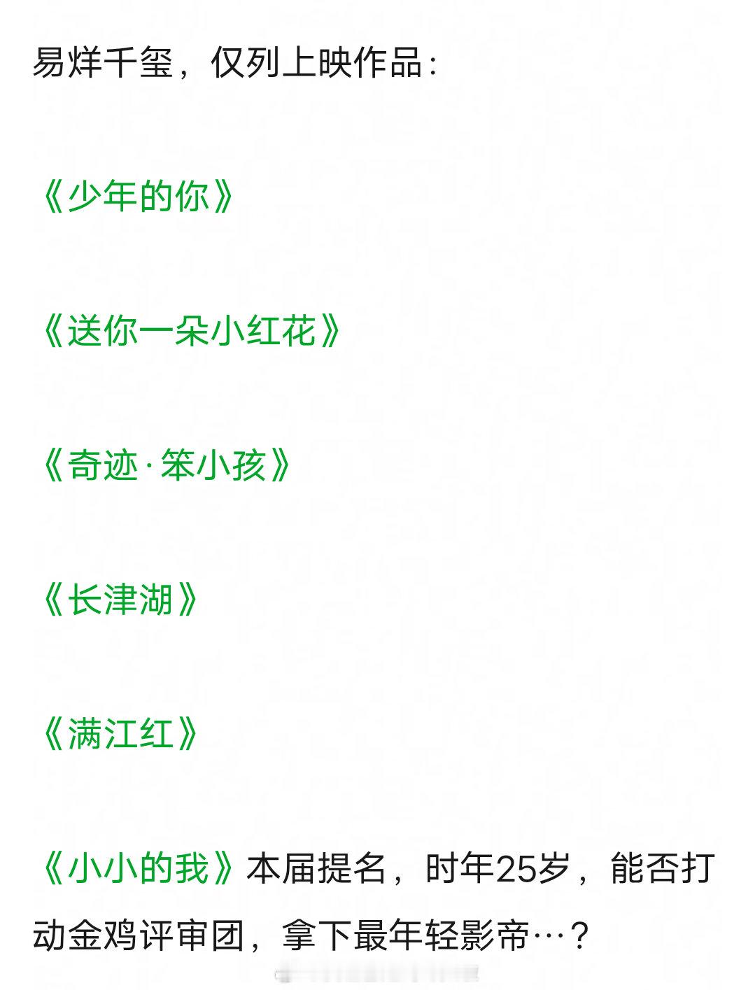 易烊千玺如果拿下本届金鸡奖最佳男主角,就会打破刘烨的纪录,成为最年轻的金鸡影帝。以易烊千玺的作品厚度,拿奖算不算实至名归?