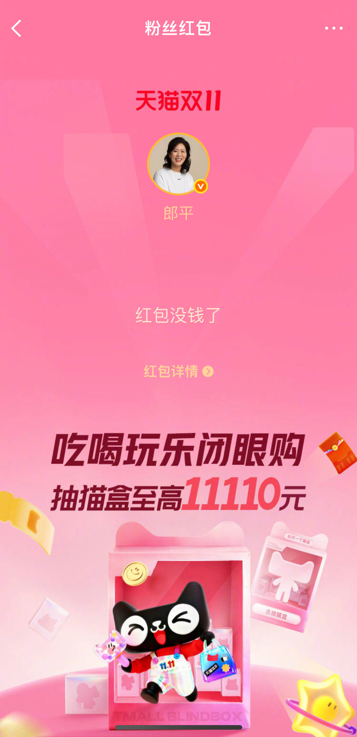 心动双十一,朗导送福利又到一年一度的双十一狂欢节,微博心动礼遇季特别推出了明星红包雨的超级福利,女排传奇郎平朗指导就是第一波的福利官如果在排球场上,想必各位肯定接不住朗导的世界波;但来到双十一的赛道,“铁榔头”的惊喜红包雨,必须就得接接接,接住朗导的心意啦没有抢到的朋友也不要遗憾,今天12点至22点,每个整点时刻都会有好运红包派发,最高有机会抽取11110元的超级大红包,快来参与活动试试你的手气吧