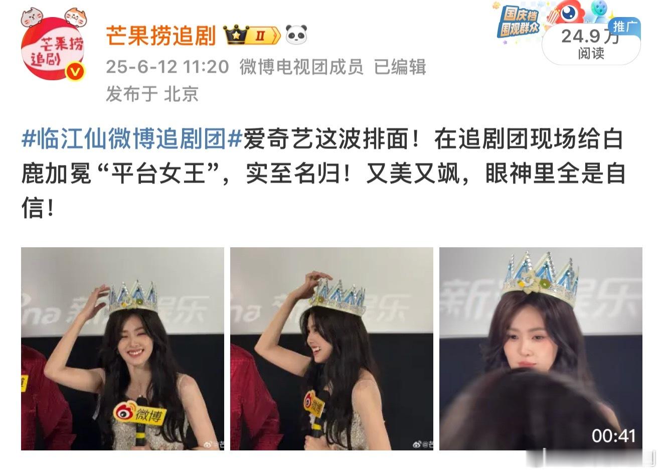 为什么总有人质疑白鹿的扛剧能力?除了下载量,《临江仙》剧宣时,平台工作人员第一次在追剧团下场为一个明星送皇冠,夸她是爱奇艺女王,对她的认可度还不够高吗?