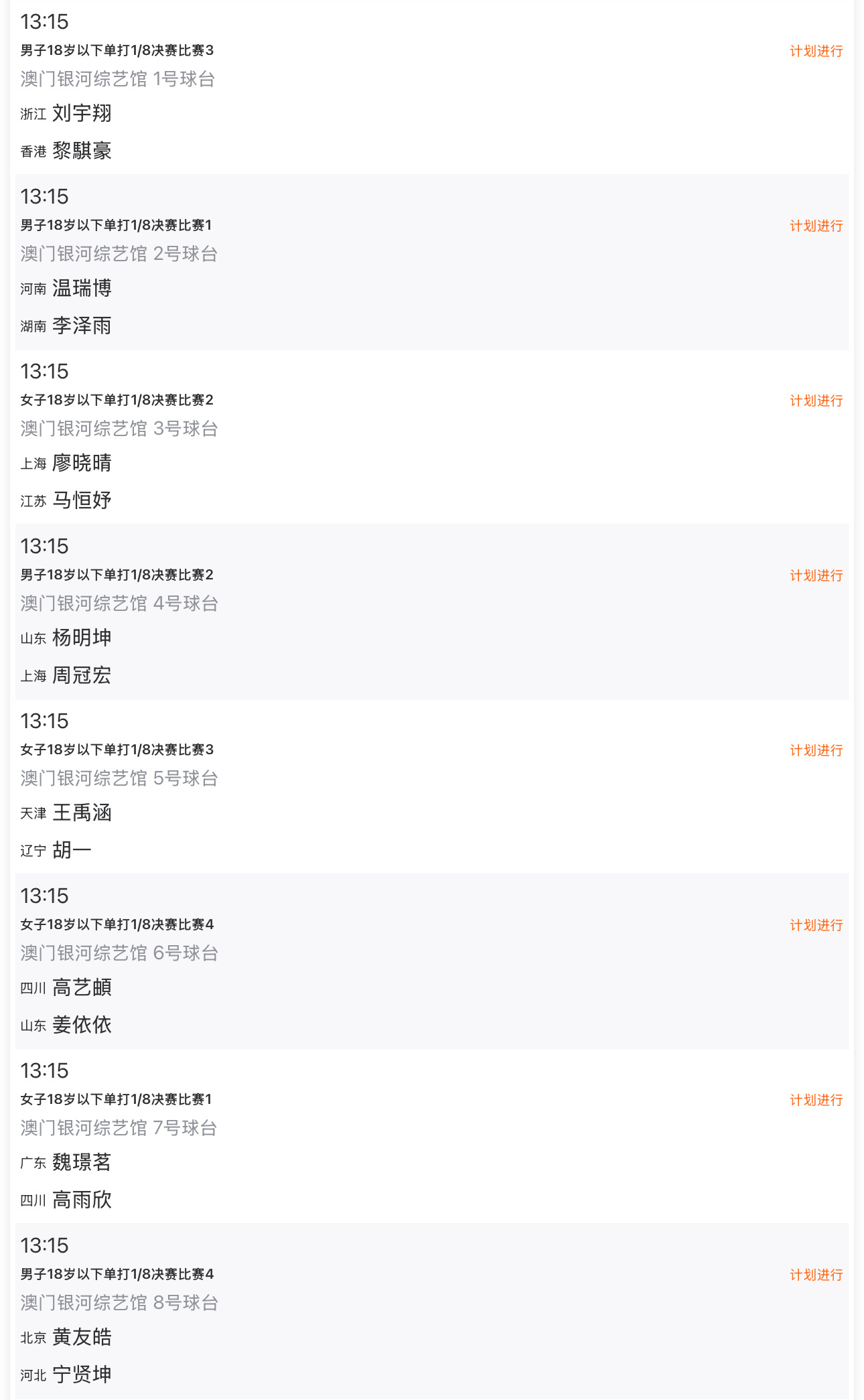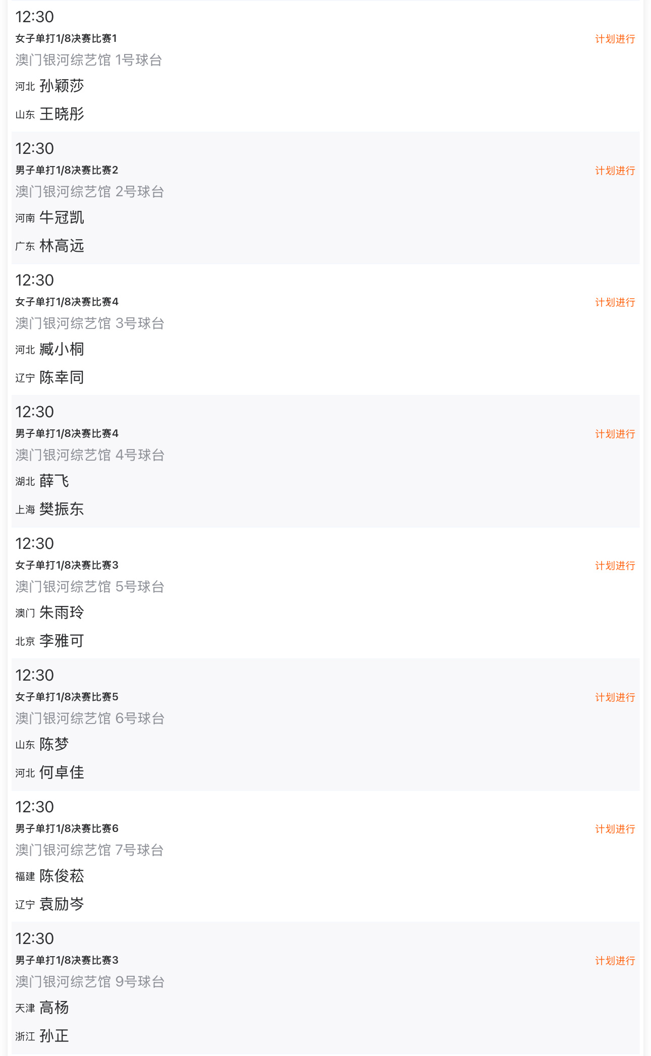第十五届全运会 乒乓球项目女单1/16决赛对阵及赛程