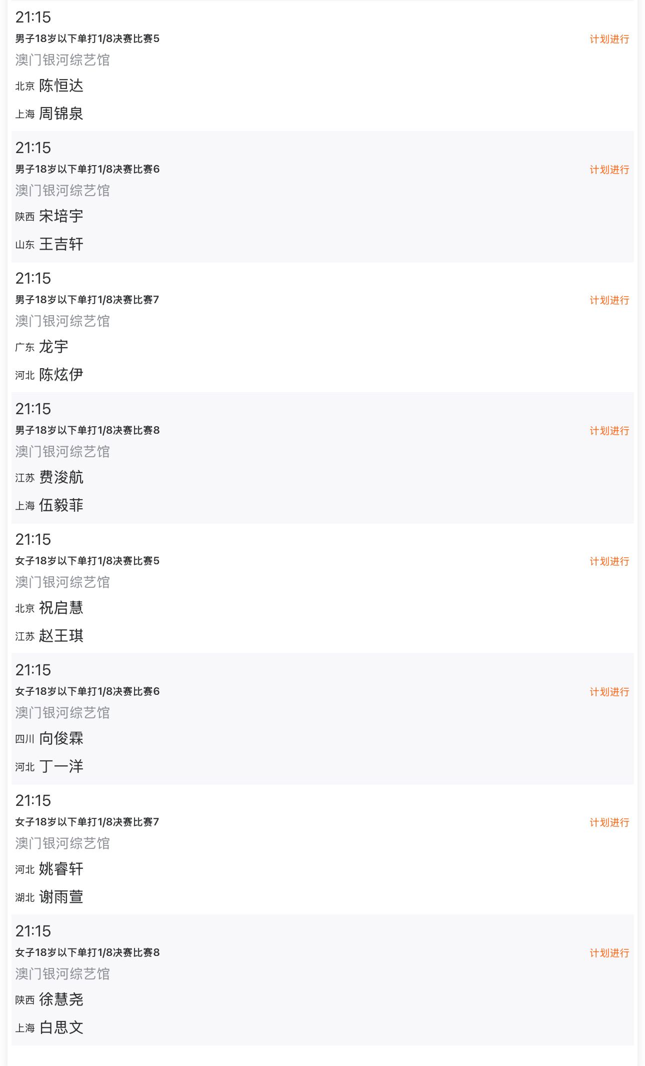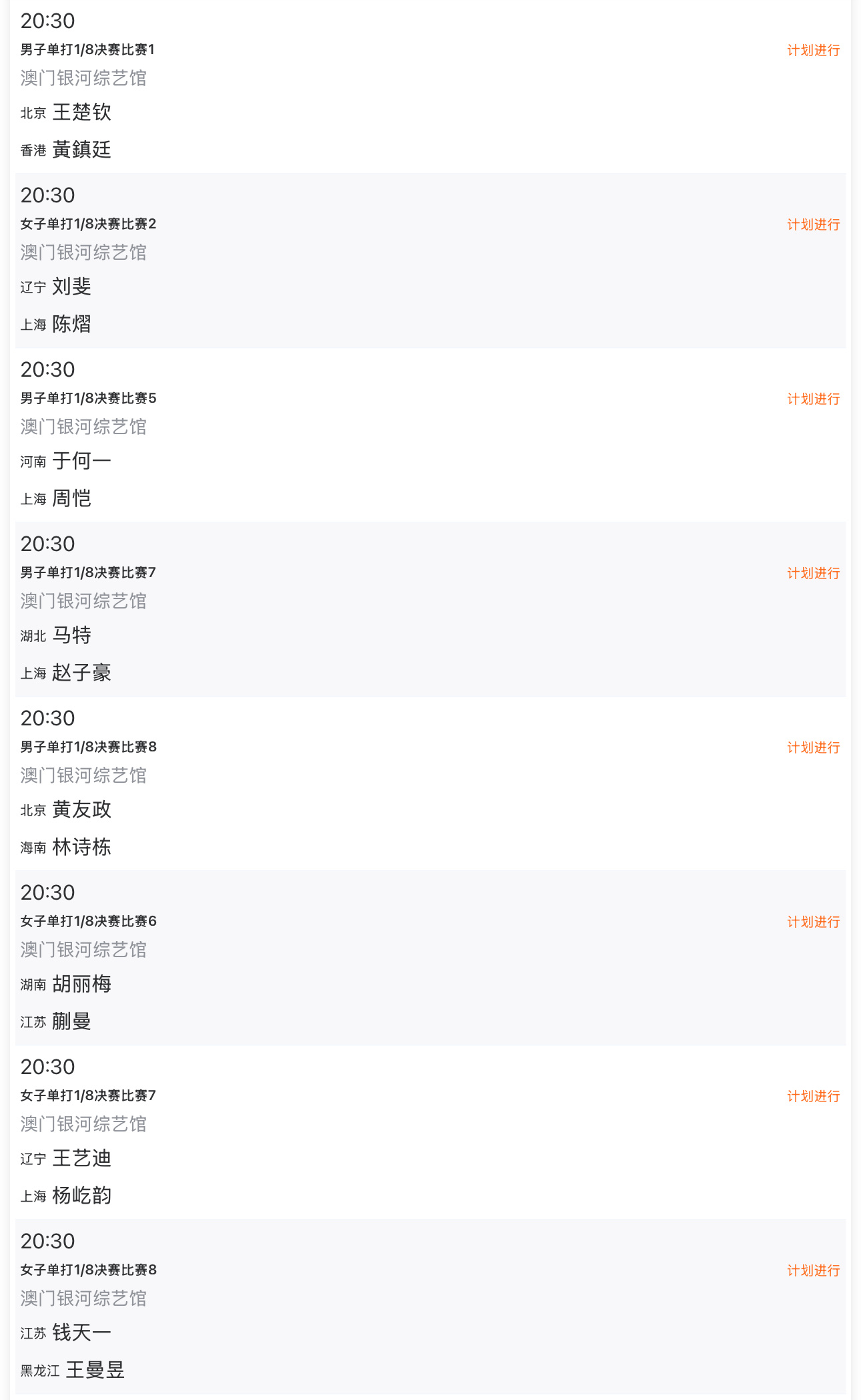 第十五届全运会 乒乓球项目男单1/16决赛对阵及赛程