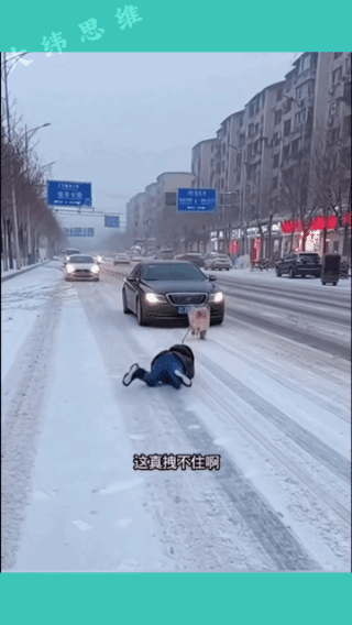 人遛狗牵着走, 狗遛人趴着追!