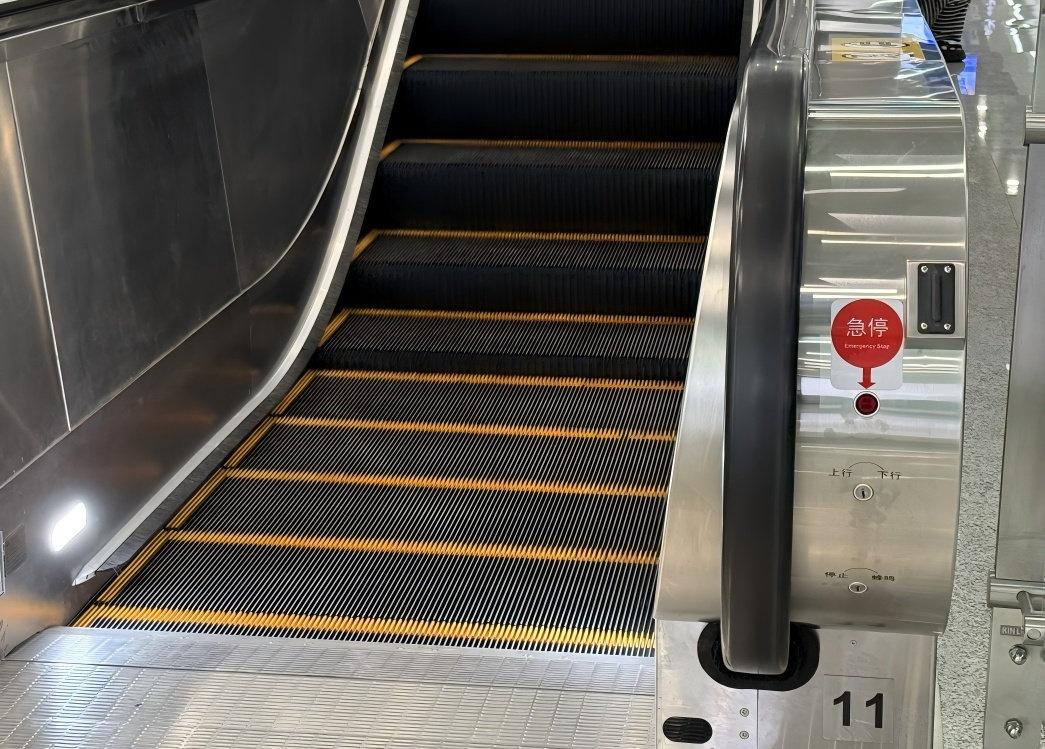 扶梯两端及长大扶梯中部设有“急停”按钮,发生扶梯卡夹物品或人员在扶梯上摔倒等紧急情况时,可在提醒扶梯上其他人站稳扶好后,第一时间按下该按钮使扶梯停止运行,并及时通知车站工作人员到场处理~ 图:吴宇轩