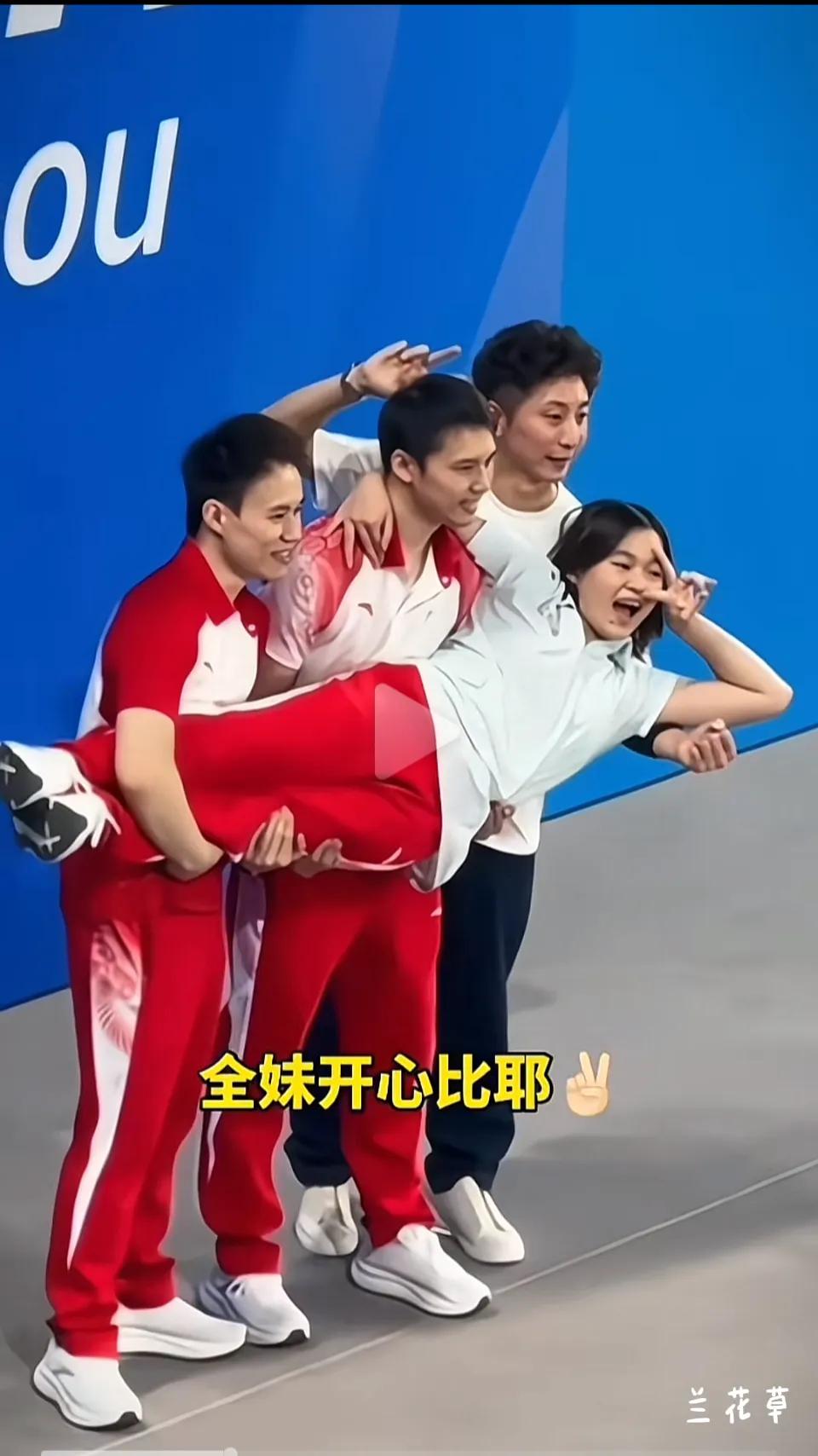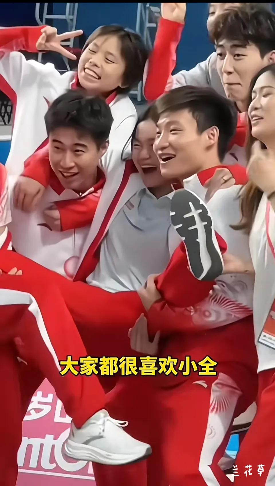婵宝的团宠不是吹的。 林跃,陈艾森,谢思埸抱着全妹合影,全妹开心比耶。 大家都很喜欢小全。 没有比赛小全玩开心,放飞自我了。 希望全妹一直开心! (文案借用原视频作者的文字。感觉这样的文字正合适,抱歉并谢谢了)
