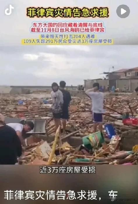 菲律宾遭水灾,一百四十多万人急需救援,转头就向中国求助,我们外交官的回应,网友看了都忍不住点赞! 看这菲律宾的灾情确实够让人揪心的,超强台风“海鸥”带着三米高的风暴潮猛扑过来,本来之前的地震就没恢复好,这下等于雪上加霜,整个国家简直像被洗劫了一遍。 台风“海鸥”11月4日在南莱特省登陆时,中心附近最大风力达14级,48小时内部分地区降雨量超500毫米,直接引发了大面积洪涝和山体滑坡。宿务省受灾最严重,141人死亡、123人受伤,还有57人下落不明,西内格罗斯省也有27人遇难,全国29949所房屋不同程度损毁,2800所彻底坍塌。 更糟的是,灾后没几天,更强的台风“凤凰”又逼近吕宋岛,登陆时风力达15级,菲律宾刚转移完28.2万灾民,又得紧急疏散110万人。 基础设施本就脆弱,118条道路被冲毁,21条彻底断行,167个海港停运,485个市镇停工、731个市镇停课,救援物资根本送不进去,一百四十多万人被困在灾区,缺粮缺水缺药品,处境越来越危险。 这种时候,菲律宾把求助的目光投向了中国。其实这不是两国第一次在灾害中互动,2013年超强台风“海燕”袭击菲律宾时,中国就送去200万美元援助,还派了海军医院船过去,中国红十字救援队队员甚至在救援中病倒,菲律宾红会连夜在全国找血小板抢救,那场36小时的生命接力,至今让人印象深刻。只是过去几年,双边关系时有波折,这让网友对这次求助多了几分复杂情绪。 面对提问,外交部发言人林剑的回应干脆又温暖。他先对遇难者表达哀悼,向家属和灾区民众送去慰问,没有丝毫外交辞令的生硬。 紧接着就明确表态,中方已经提供了现汇和紧急物资援助,连地方省份都在通过友省渠道发力,帮着菲律宾渡难关。最后还特意祝愿灾区民众早日重建家园,话语里满是人道主义的真诚。 没有回避,不打官腔,更没拿过往矛盾说事儿,这份回应戳中了网友的心。大家点赞,不是因为援助有多丰厚,而是这份回应守住了人道主义底线,又没丢立场。 中国向来如此,2006年菲律宾水灾给过100万美元援助,2014年地震后也第一时间送物资,哪怕有分歧,面对生命也从不含糊。但这次的回应更显成熟,不搞大包大揽,而是根据实际能力提供帮助,既体现了友好情谊,又守住了原则。 有人觉得菲律宾“需要时才想起中国”,这种情绪能理解。可灾害面前,最该被看见的是那些被困在避难所里的普通人,是失去家园的灾民。 中国的援助从来不是交换,而是出于对生命的尊重,这份格局恰恰是大国担当的体现。林剑的回应把这点说得明明白白:援助是人道主义,是友好情谊,与其他分歧无关。 其实细看就能发现,中国的援助一直很实在。现汇能让菲律宾直接采购急需物资,避免运输延误; 紧急物资里的帐篷、药品、饮用水,全是灾区当下最缺的东西。地方省份的友省援助更贴心,比如福建和菲律宾多个省份有合作基础,送的物资全是根据当地气候和需求准备的,这种精准帮扶比空泛的承诺有用得多。 这场灾情里,中国的回应撕开了“国家关系只讲利益”的刻板印象。它证明,大国可以有原则,更可以有温度;可以坚持立场,更能在灾难面前伸出援手。那些骂“冤大头”的声音,终究没盖过对生命的共情,这正是网友点赞的根本原因——大家认可的,是这种有底线、有温度的处事方式。 中国的援助从来不是“施舍”,回应也不是“讨好”,而是基于人道主义的选择,是邻里间最基本的善意。这种善意不依附于利益交换,不妥协于矛盾分歧,恰恰展现了真正的大国气度。 各位读者你们怎么看?欢迎在评论区讨论。