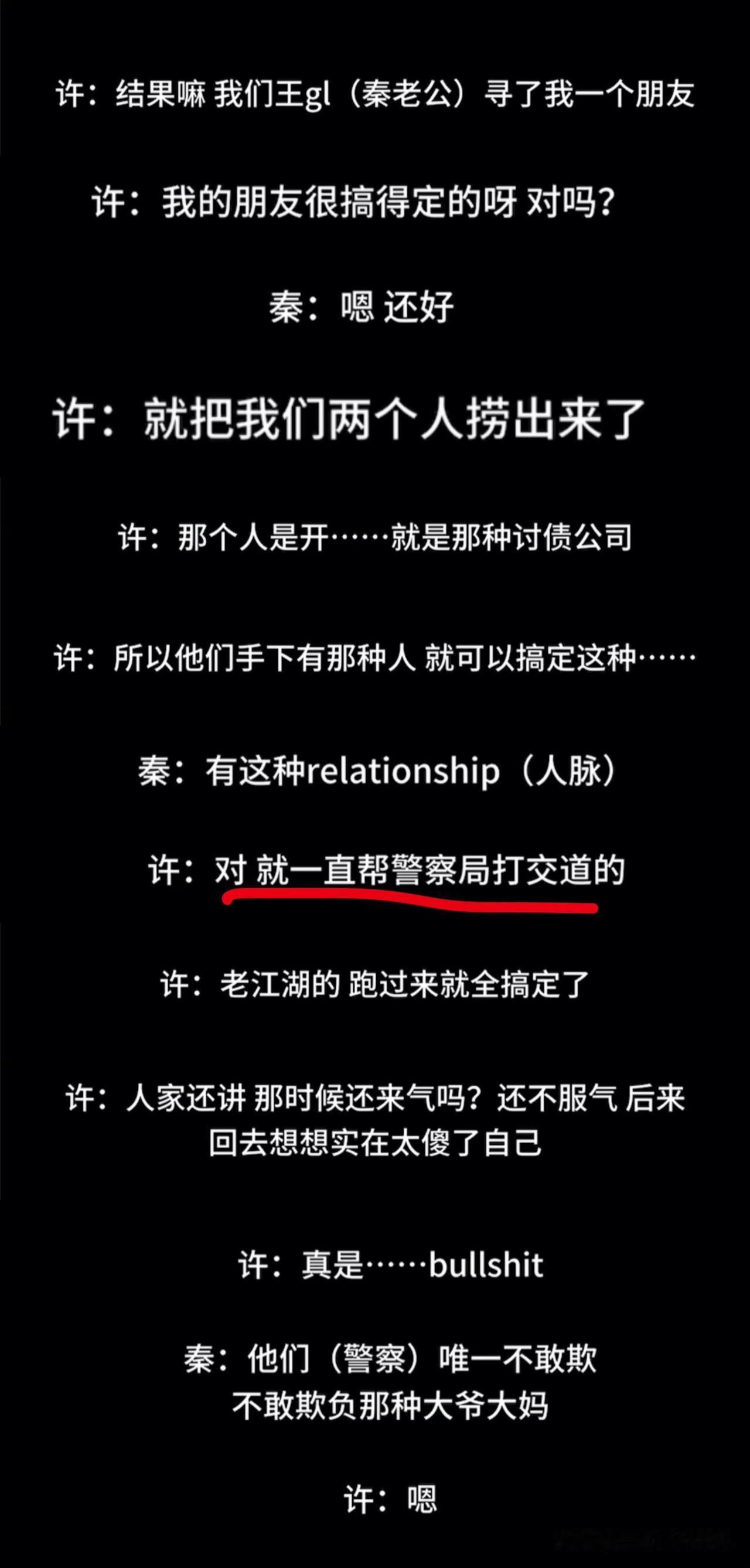 古二不愧是编剧,知道什么剧情放在什么节点最有用,今天发的录音简直让早上的通告变成笑话。 而且又添了辱女的,秦大编剧一个靠女性吃饭的人居然这么看不起女性观众。 好一个“三八红旗手”啊,只应了三八两个字吧。 古二并不是一上来就爆料的,他是有长期的维权过程的,他是维权无果后才选择玉石俱焚的。 古二从三年前就开始在网上用小说的形式记录剧组生活,同时暗示剧组对青年编剧存在“霸凌”现象。 这还只是我们看到的,在这之前,古二与剧组私底下肯定已经经历过无数次沟通。 然后今年9月,古二在网上发长文说自己没有获得剧本编剧署名和稿酬,并发布聊天记录和录音内容。 9月23号,《繁花》剧组强势回应,说古二只是前期资料收集小组的成员,还指控他偷录私人对话、加工剪辑后发布,侵犯了隐私。 然后最近几天的录音事件大家也都知道了,无论是古二的爆料还是繁花的回应,几乎和一样没有区别。 一个不要命,一个不妥协。 社会上人情世故存在,大家都懂,毕竟人情社会,啥都牵扯人脉。 但闹的全名皆知民怨沸腾却依然当成世俗的“人情世故”处置试图“大事化小”“小事化了”就很搞笑了。 可能吃瓜群众觉得,给古二署名一个编剧怎么了? 大约是不懂业内的操作和评奖流程。 如果古二和秦并列,一是古二身价立马涨,以后就不好用了;二是评任何奖,秦和古都要分。 而且不论秦要运作什么,都要经过古的同意,最终结果、荣誉,也要和古平分。 如果不在片头,在片尾给古一个署名呢? 可以挂一个好看一点的文学策划,单挂或者几人并列,古的身价一样会涨,一样没那么好用了。 但跟着一个名导做大项目,大家的期待都是跟着做完,受过苦之后身价涨,但大导有权力涨谁的不涨谁的。 繁花拍完后,胡歌、唐嫣、辛芷蕾、游本昌都涨了,有几个沪语演员也涨了,但仔细看就发现,马伊琍没涨,明显她是演得最好的。 大导不给古二涨,应该是觉得古二除了牛马价值,没有其他价值。 古二已经很忍让了,,他给足了墨镜导演和繁花时间了,想象一下,如果古二在繁花刚上映或者上映前爆料,繁花的结局会是怎样的? 他甚至在繁花上映两年后才把录音放出来,两年时间,墨镜导演和繁花得到了无数荣耀和赞誉。 这两年间,墨镜导演和剧组应该有很多沟通和挽回的机会,可傲慢的他们最终还是让事情走到了今天这一步。 墨镜导演和秦大编剧觉得就是一开始以为古二不敢怎么样,以及他们以为大家会相信大导不会相信小编剧,结果两个都预判错了,把老实人逼急了,加上大家现在早就对咖位大的和官方这种祛魅了,所以翻车了,说白了还是看不起底下工作人员以及看低了大家的智商。