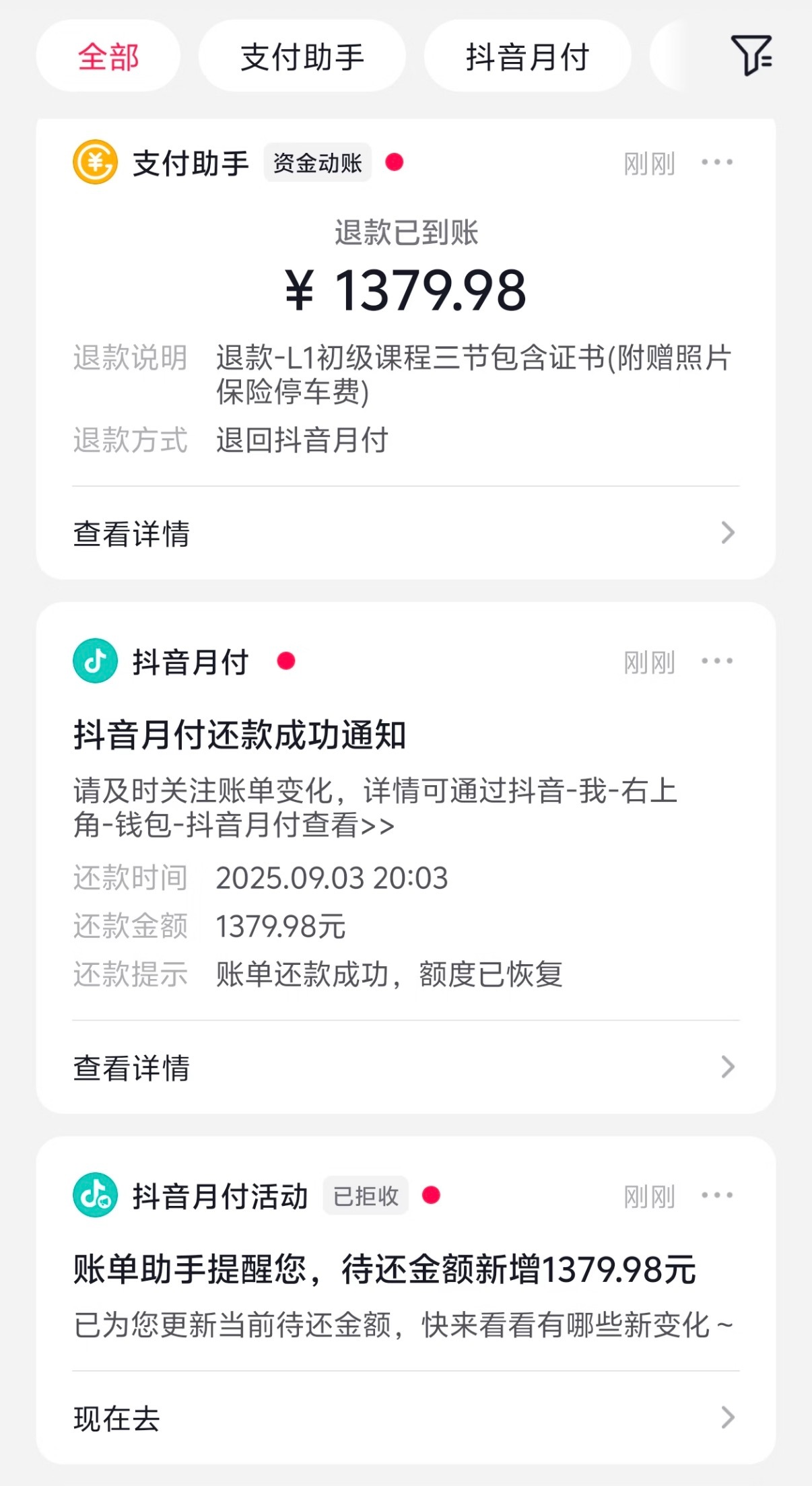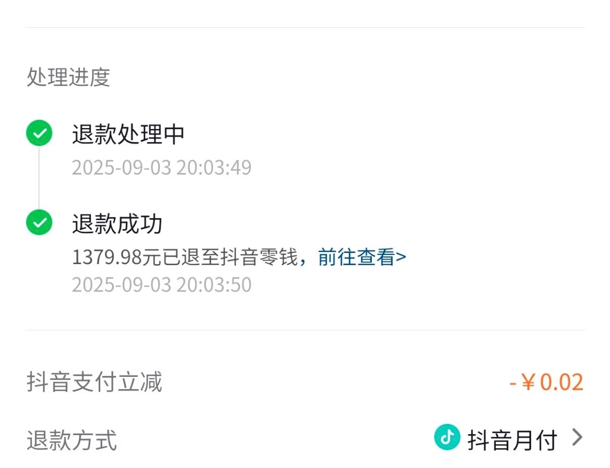 刷到了微信提现免手续费的另一种邪修方法(不是金币兑换提现券,也不是小程序买东西送体现券,是秒到账的)仅需五步1. 团购里选支持抖音月付的商家,用抖音月付(不分期)直接下单;2. 找到抖音月付界面做提前还款,优先用微信支付,没有微信就私聊在线客服要其他还款途径;3. 确认月付显示“还款完成”后,退掉刚下单的商品(必须先还清月付才有效);4. 退款会直接回到抖音钱包,不会经过月付;5. 从抖音钱包提现到银行卡,这样就完全不用付提现手续费啦。而且抖音月付也可以采用同样的方法