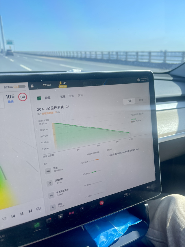 小长途能耗 表显370公里出发,气温4度左右,沂南到青岛,全程行驶了281公里,剩余60公里,均速90公里每小时,表显9折
