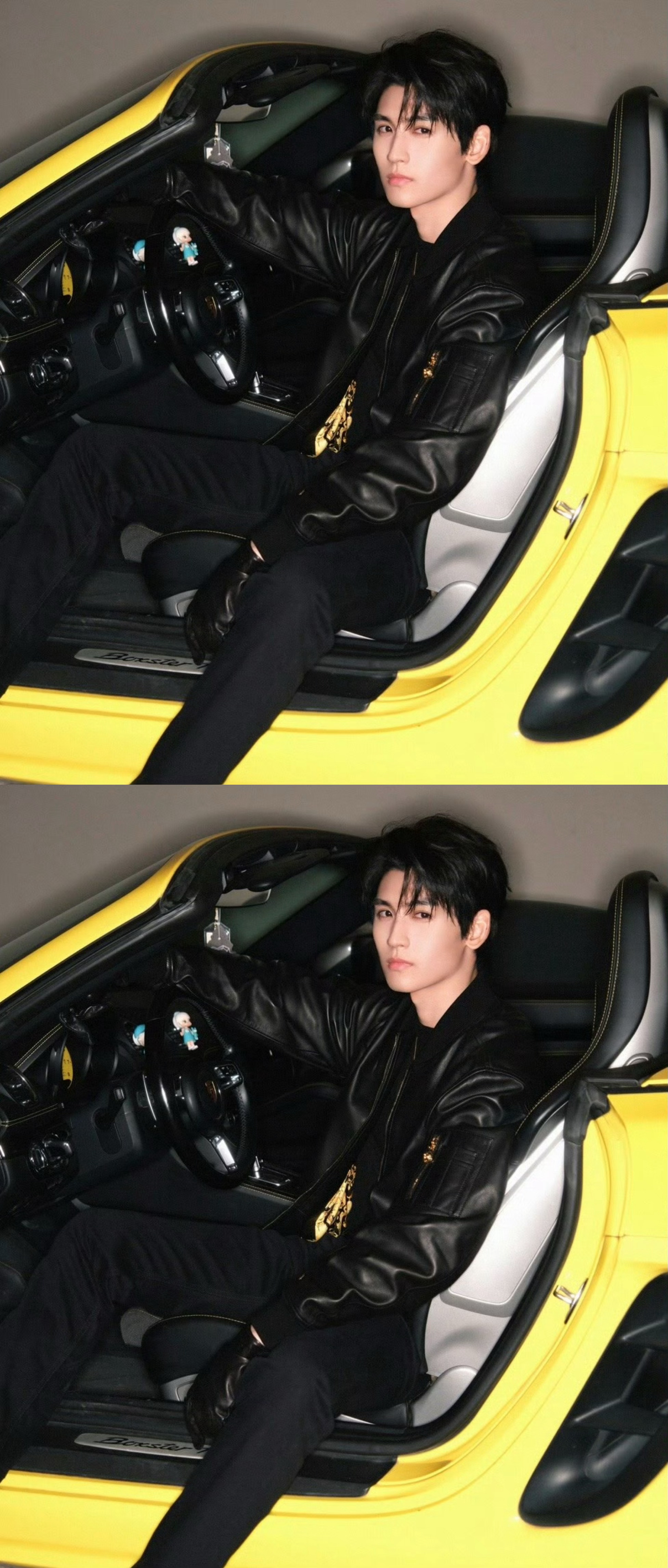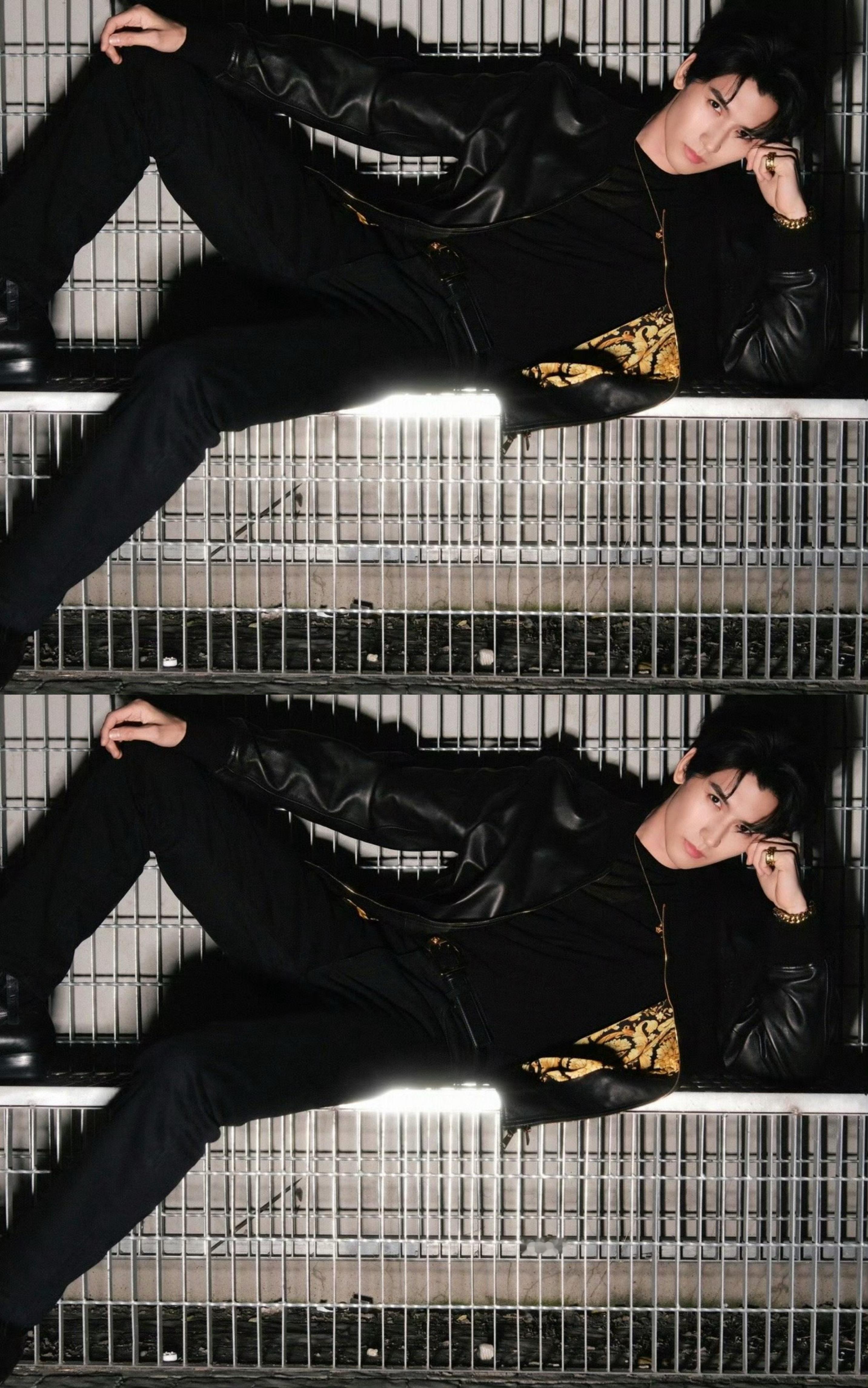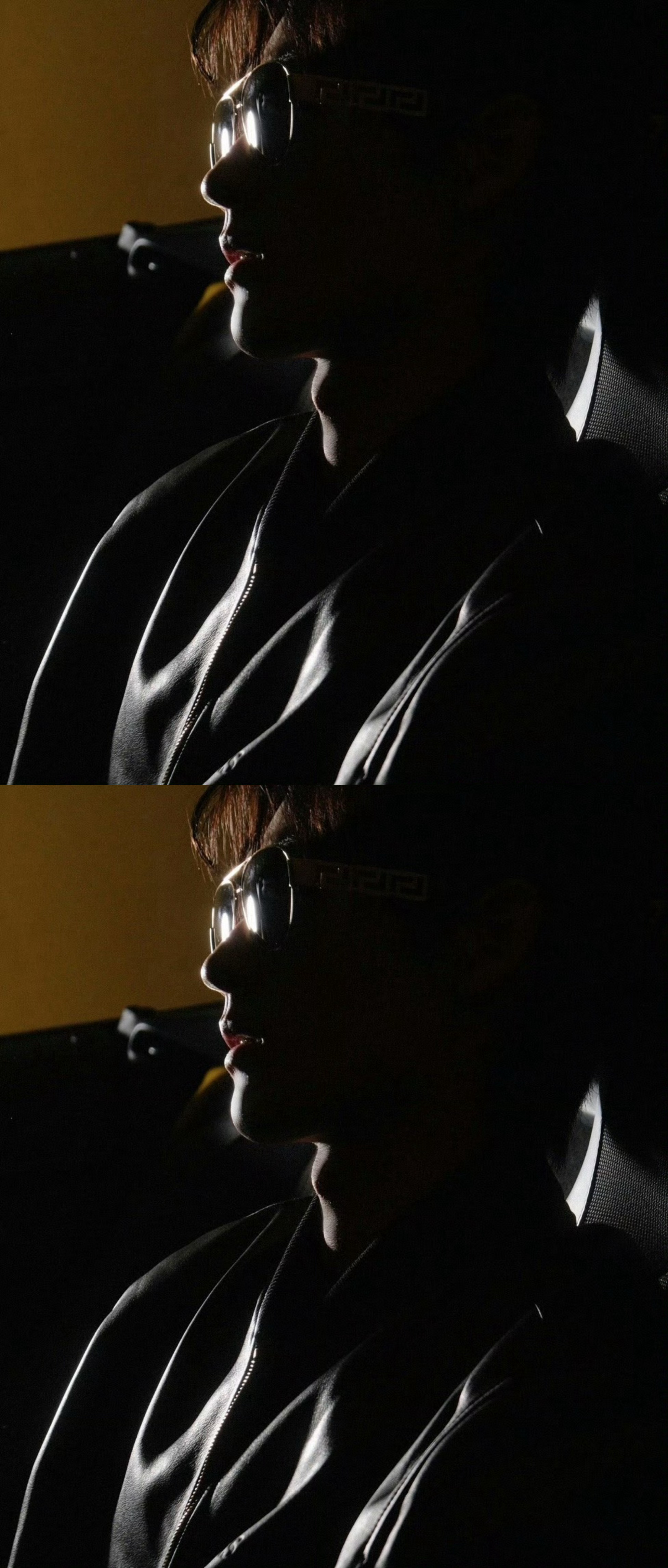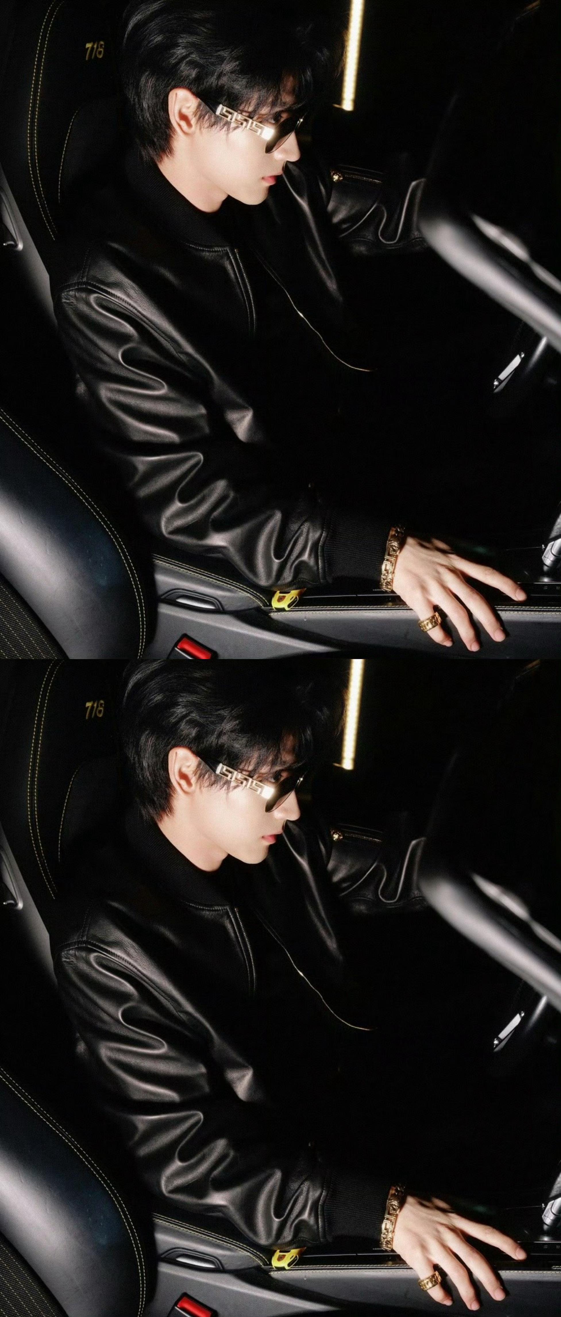 黄俊捷今日份新鲜营业照,墨镜+黑皮衣造型,太酷了太酷了😎