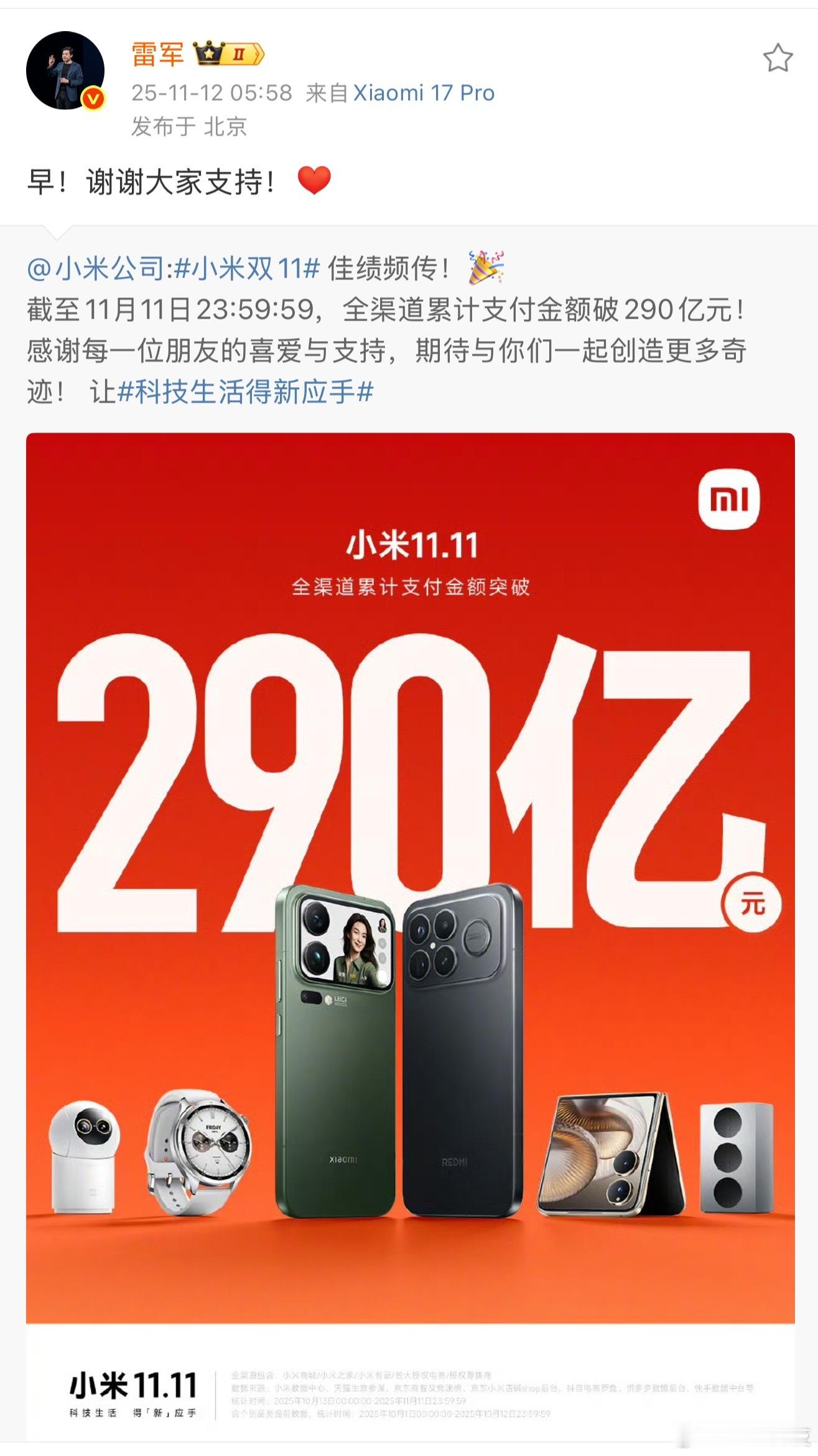 从一定程度上来说,双11算是用户和品牌之间的双向奔赴。一方面我们消费者能在这种一年中不多见的时候花更少的钱,买到比平时价位更低的产品。另一方面因为用户的支持,商家也能获得销售额和业绩的提升,属于一种对双方都比较好的事。只不过市场正常竞争的存在,大家总会去比较谁家卖的更好谁家产品更受欢迎。小米连续三年获得国产手机销量第一,小米17 Pro Max还拿下6K+价位段国产手机销量销额双料冠军,这反应出来消费者对小米和小米智能手机的喜欢,也说明产品确实还可以。大家的眼睛都是雪亮的,一对比就能知道,谁家产品更好谁家价位更有优势。央视《消费主张》也报道了小米17系列备受年轻用户信赖,镜头里人头攒动,非常热闹。而小米17系列无论影像续航的提升,还是妙享背屏等创新设计,在年轻人中都很有吸引力。当一款产品能真正打动人心,成绩自然就来了。