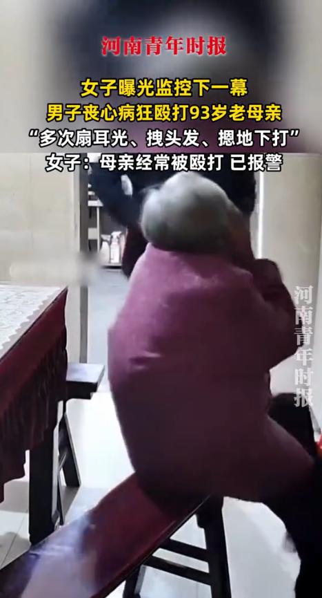 丧尽天良!江苏,男子丧心病狂,殴打93岁老母亲,多次扇耳光,拽头发,摁地下打!女儿:“母亲经常被殴打,已经报案!网友:老人已经风烛残年了,怎么下得了手,何况是自己亲生母亲,人性泯灭啊! 据黄河微视11月11日报道,这事儿是老人的女儿捅出来的,她早就觉得不对劲,自己的母亲年纪这么大了,身上却老是青一块紫一块的,问她怎么回事,老人总是支支吾吾,眼泪汪汪地说不清楚。 女儿心里跟明镜似的,肯定是哥哥干的好事,可是,没有证据,跟谁说都没用,说了哥哥也不认,万般无奈之下,她偷偷在家里装了个监控,她要看看,哥哥到底是怎么对待母亲的。 监控装上没多久,就拍到了让人心碎又愤怒的画面,那天,也不知道因为什么鸡毛蒜皮的小事,男人又冲着母亲发火了,嘴里骂骂咧咧的,话越说越难听。 93岁的老母亲,可能耳朵有点背,也可能是想辩解几句,就回了几句嘴,这一下可不得了,彻底点燃了儿子的火药桶。 视频里,那个男人根本没把眼前这个白发苍苍的老人当成自己的母亲,他一个箭步冲上去,抬起手就对着母亲的脸狠狠扇了一巴掌。 那清脆的响声,隔着屏幕都让人心头一颤,老人被打得一个趔趄,整个人都懵了,下意识地捂着脸哭了起来。 这哭声非但没有换来儿子的半点怜悯,反而让他更加暴躁,他两只手一起上,死死薅住母亲稀疏的白发,把老人的头当成沙袋一样,又是几下重击。 老人疼得受不了,想从椅子上站起来躲开,可她一个93岁的老人,动作哪有年轻人快,她颤颤巍巍地刚挪动几步,就被儿子一把抓住。 男人根本不管不顾,使劲一扯,就把母亲重重地摔在了冰冷的地板上,这还不算完,他扑上去,把瘦弱的母亲死死摁在地上,拳头还在不停地落下。 整个过程,老人的哭喊声、求饶声,显得那么微弱又无助,而这个儿子,打完之后,居然像没事人一样站起来,嘴里还嘟囔着什么,转身就去吃饭了,留下母亲一个人躺在地上,半天都爬不起来。 女儿在另一头看到这个视频,气得浑身发抖,眼泪止不住地流,那是她的妈妈啊,是那个含辛茹苦把自己和哥哥拉扯大的妈妈。 她想不通,人心怎么能狠到这个地步?那可是给了你生命的母亲啊!她活到93岁,本该是全家的福气,现在却成了儿子发泄情绪的工具。 这件事在网上传开后,所有人都炸了锅,有个网友说的话特别戳心窝子,他说:“我爸老年痴呆,有时候把我折磨得快疯了,我就跑去门外连抽两根烟,冷静一下再回去,我从来没想过骂他一句,打他一下,我总想,妈已经没了,我还有个‘傻爸爸’在,就是我的根啊。” 是啊,父母在,人生尚有来处;父母去,人生只剩归途,一个连自己93岁亲妈都下得去手的人,他的心到底是什么做的?难道是铁石心肠吗? 还有人说,不管老人做了什么,哪怕她再唠叨,再糊涂,那都不是儿子可以动手打人的理由。 “百善孝为先”,这是老祖宗传下来的规矩,是刻在骨子里的东西,你可以跟她讲道理,可以不理她,甚至可以躲开她,但你绝对不能动手。 动手打父母,那跟畜生有什么区别?这种行为,已经不是简单的家庭矛盾了,这是在践踏人伦道德的底线。 有人猜测,这个男人之所以会变成这样,可能跟他从小被溺爱有关,小时候犯了错,当妈的总觉得“孩子还小”,不舍得打不舍得骂,什么都由着他的性子来。 结果,孩子长大了,自我、自私、暴戾的性格就养成了,他觉得全世界都应该围着他转,稍有不顺心,就要发泄,就要用暴力解决问题。 可悲的是,当年那个溺爱他的母亲,如今成了他暴力行为的直接受害者,这真是莫大的讽刺。 但话说回来,不管小时候的教育方式如何,作为一个成年人,就该为自己的行为负责,把自己的无能和暴戾,发泄在一个毫无还手之力的老人身上,算什么本事? 这件事给所有人提了个醒,我们这个社会,不能只看一个人赚了多少钱,有多大的本事,更要看他的人品,看他的德行。 一个对父母都不孝顺的人,你还能指望他对社会,对别人有多大的善意吗?法律是道德的最低底线,对于这种丧心病狂的虐待行为,绝不能仅仅当成“家务事”来处理。 他打的不仅仅是自己的母亲,更是打了我们这个社会关于“孝道”的脸,这种行为必须受到法律的严惩,让他为自己的暴行付出应有的代价,也给所有心存侥幸的不孝子敲响警钟。 养儿防老,养儿防老,可现实却一次次上演“养儿啃老”甚至“养儿害老”的悲剧,这位93岁的老母亲,熬过了岁月的风霜,却没有躲过亲生儿子的拳头,这才是人生最大的悲哀。 希望法律能还老人一个公道,也希望天底下所有的父母,都能被温柔以待。 信源:黄河微视2025-11-11——女子曝光监控下一幕!男子丧心病狂殴打93岁老母亲:多次扇耳光、头发、摁地下打