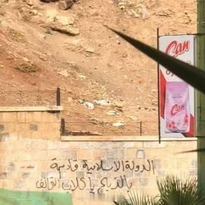叙利亚中部哈马市的街头出现了亲1515的标语。