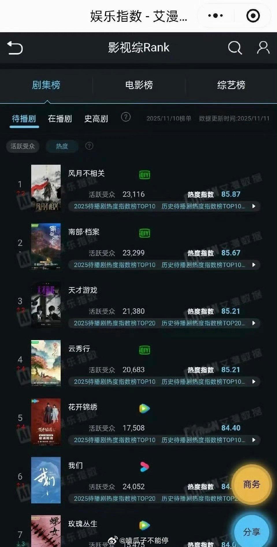 邓为《风月不相关》拿下待播剧热度第一,殷戈止拿下待播剧角色榜第一