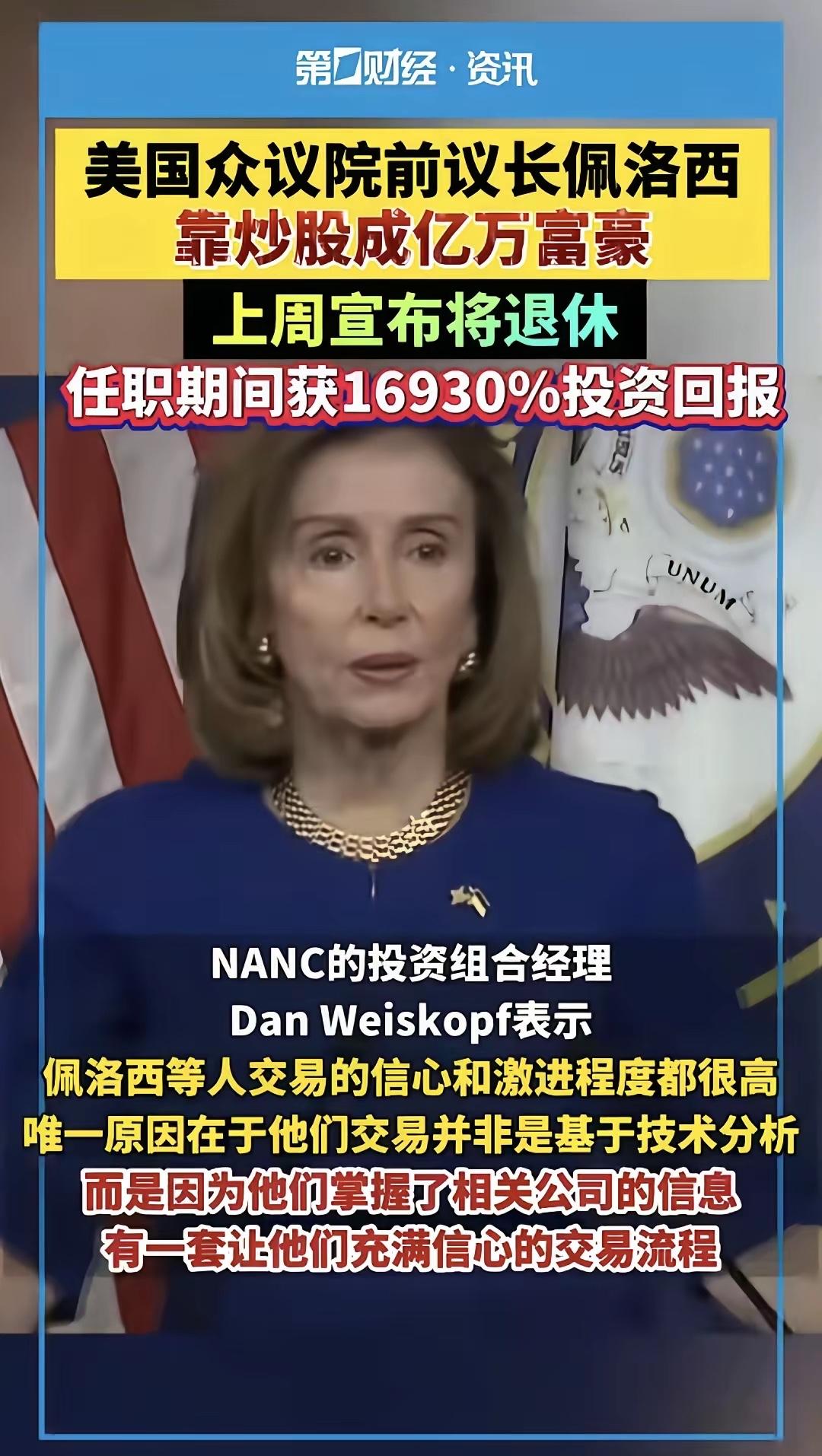仔细看了看美国前众议长佩洛斯炒股的投资回报率,高达“16930%”的投资回报,感觉“股神”名头封给佩洛西有点小了! 不过佩洛西赚钱不靠技术分析,而是因为她掌握了 相关公司的信息,有一套充满信心的交易流程,难道这不是妥妥的“内幕交易”?