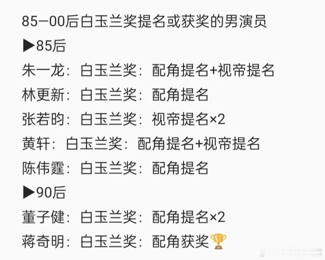 85后~00后🌸🥜白玉兰提名or获奖一览