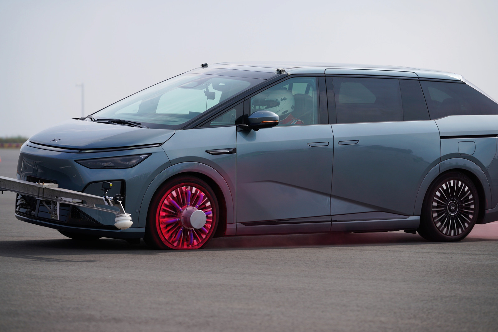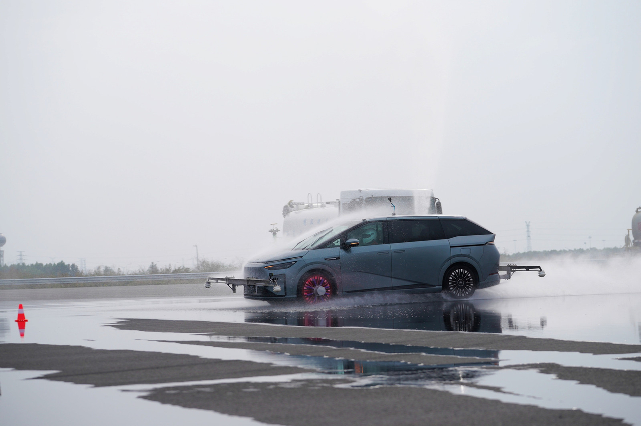 小鹏X9超级增程这次做的极端场景稳行挑战意义不小,做到了多个全球首次,总结下就是满载7人做了多种超高速的爆胎测试。这个满载7人就意味着小鹏所有的极限自动控车能力是按照最大冗余去做的,这就具有极大的全场景兼容性,因为7人满载后,他的总重高达3.324吨。在这种工况下,对整车行车稳定系统的综合能力带来极大的挑战,其实我想说这不仅对紧急爆胎控车程序有挑战,甚至还对车辆白车身,底盘原生零部件有挑战。首先系统在能在200毫秒内识别出车辆爆胎了,这比人类眨眼的速度还快两倍。瞬间识别后系统开始调集全车的硬件能力来稳定车身,很难想象X9特有的后轮转向这时候也能立刻加入进来根据实际情况进行微调实现厘米级动态轨迹修正,减少失控风险。我最关注的是爆胎后的方向盘手力会不会瞬间变大并往爆胎侧偏转,很幸运我这次在测试现场亲自试到了这个爆胎工况,完全没有那种很吓人的突然冒出来的手力。得益于EPS助力转向系统的快速调整手力,我可以完全没有心理的压力的把车慢慢停下来。这是我第一次体验人造爆胎工况,速度极高甚至地面还有大量积水。测试时我非常紧张,因为这是一台体型硕大的mpv,一旦高速失控非常难以救回来。开到时速130爆胎已经很紧张,后来触发爆胎按钮后整车的状态完全超出我的想象,不需要什么特殊的驾驶技术就可以安全停车。当然了最紧张的还是我坐在震哥驾驶的后排,他是以非常离谱的时速160带着我们一车人冲进积水中爆胎,我在后排紧张极了,虽然已经系好安全带但一度感觉手不知道该放哪更安全。然而事实证明我完全过虑了,啥事没有。小鹏利用全车的ai技术,把整车主动安全拉到了一个新高度,除了我亲自体验的项目,他们这次还做了 - 模拟7人满载,150km/h暴雨天气爆胎 - 模拟7人满载,150km/h双轮爆胎 - 模拟7人满载,120km/h模拟冰面爆胎 - 模拟7人满载,90km/h高速绕圆爆胎这么丰富的极端爆胎工况连X9这款MPV都能轻松稳行,我相信小鹏旗下更多车型都具有这种潜力。大家都说安全是最大的豪华,小鹏用整车ai技术重塑安全概念。3.3吨的大车,时速160,爆胎后可以稳行,情况就是这么个情况。