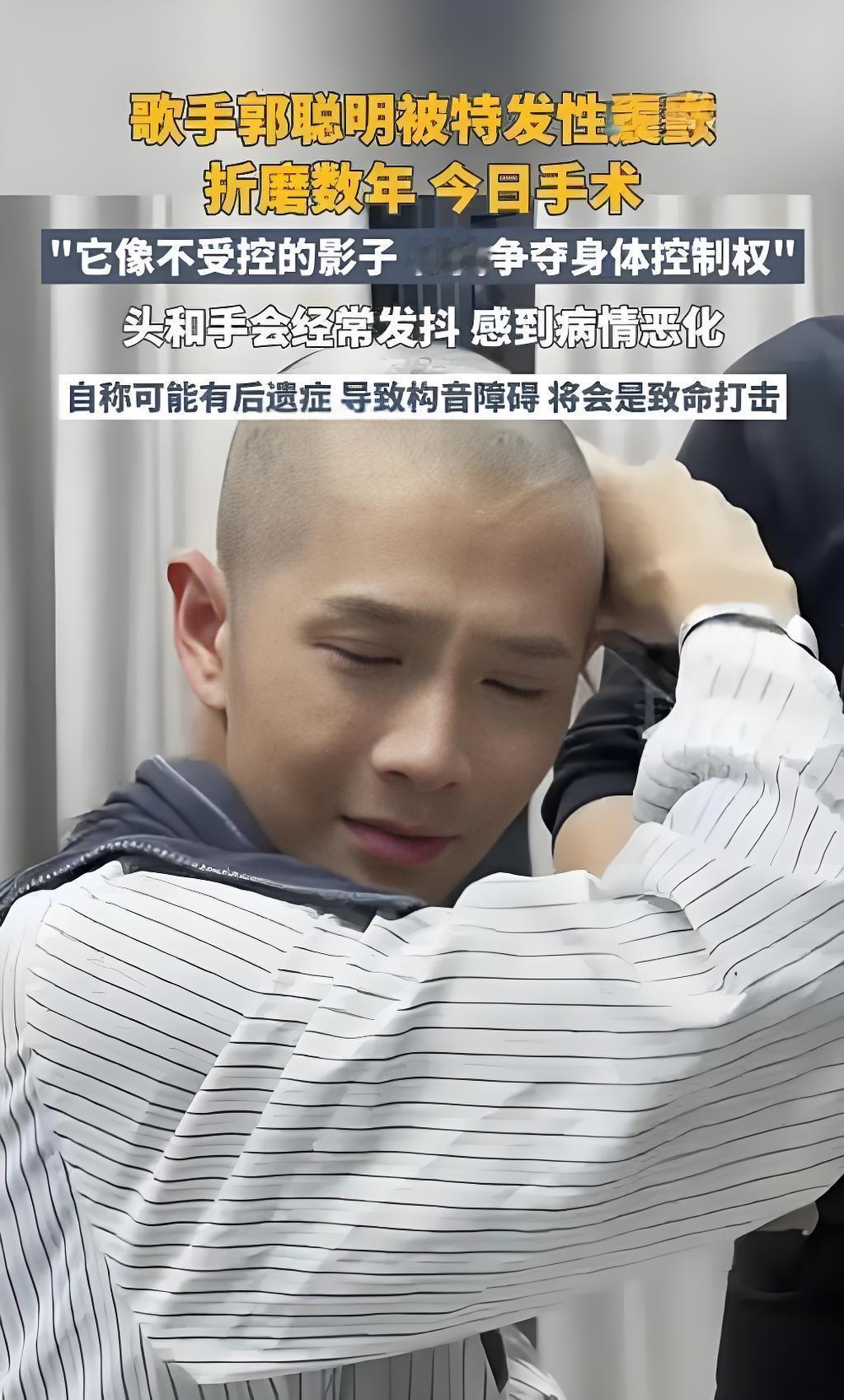 歌手郭聪明被特发性震颤折磨多年,此病源于家族遗传,自12岁起便伴随他,随年龄增长愈发严重,颤抖蔓延至脖子,影响声带与日常生活。他曾因此退网,暴瘦至100斤,背负解约赔偿压力。如今他勇敢面对,今日接受手术,期待重获新生。郭沐鑫