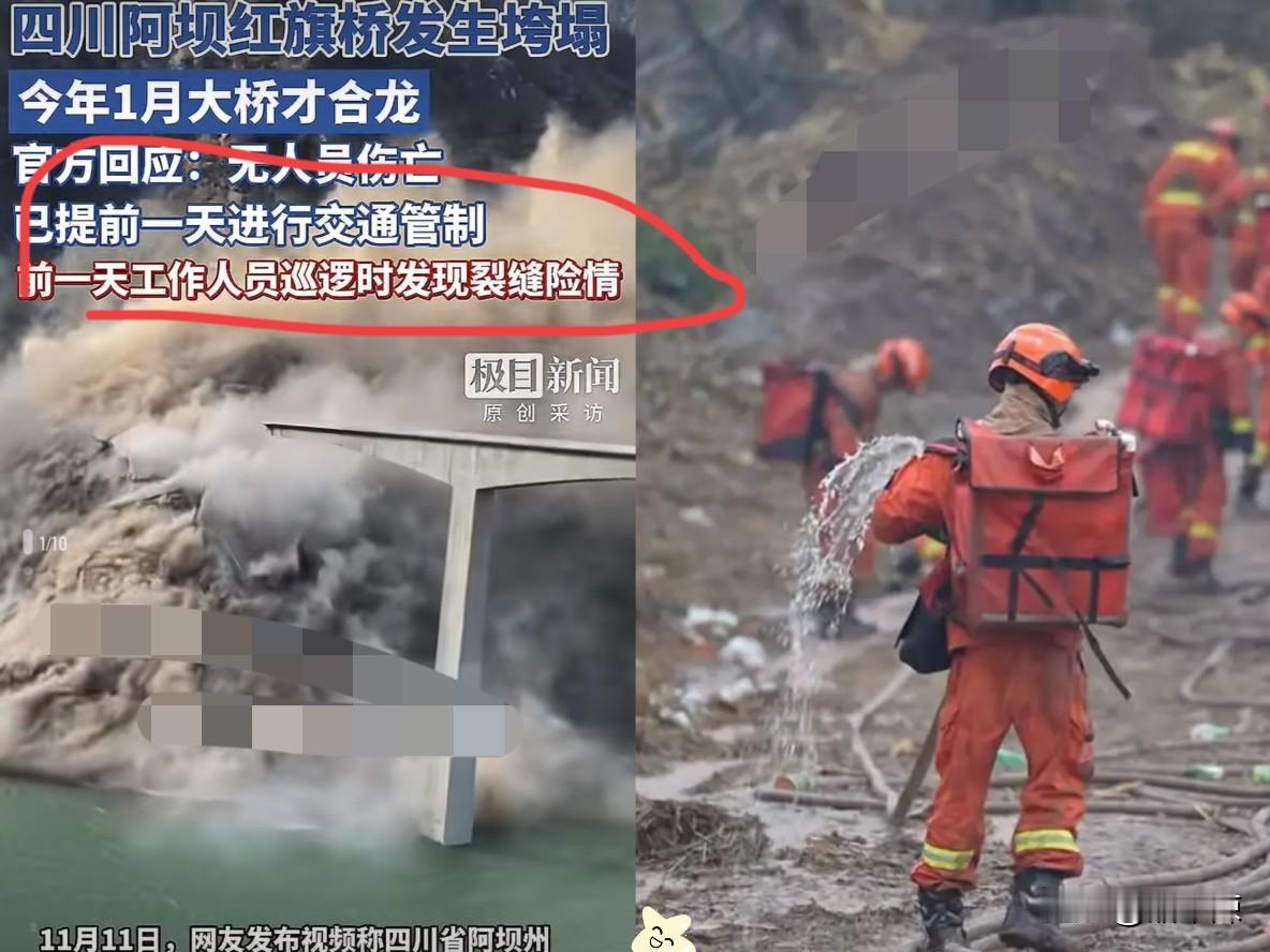 看到阿坝大桥塌了, 有句话一直不敢说, 说出来怕你们骂我,因为阿坝州的消防员安全了! 每次有险情,冲在最前面的永远是他们。明明也是爸妈疼爱的孩子、家里的顶梁柱,却总要迎着风险上,那种提心吊胆的滋味,真的不想再体会! 这次真得给巡逻人员和交通运输局点个赞,发现裂缝不忽视,果断封控交通,才没让意外酿成悲剧! 桥塌了能再建,教训能记取,但生命就只有一次啊! 我们总歌颂消防员的无畏逆行,却忘了他们的勇敢背后,是无数家庭的牵挂。要是没有这次及时管控,后果真的不敢细想! 其实我们真正想要的,从来不是“英雄救险”的悲壮,而是“风险早防”的安心! 不知道大家身边有没有消防员朋友,估计也有点后怕吧!