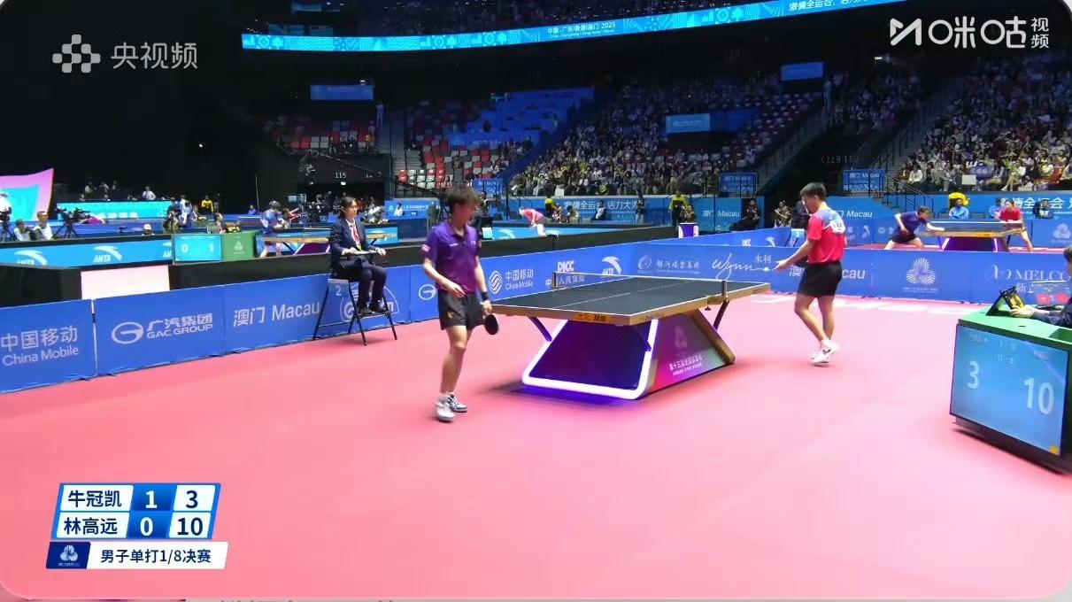 输了第一局的林高远连扳两局! 前三局牛冠凯11-8,3-11,3-11大比分落后于林高远, 这是第15届全运会乒乓球男单1/8决赛。 可刚刚结束的第四局牛冠凯11-7又赢回来了,两个人打成了2-2平。 全运会的比赛确实精彩,但全是我们国乒的选手,手心手背都是肉,谁输了都会心疼,谁赢了都会恭喜,不过我还是希望林高远获胜晋级。 高远加油[奋斗]!