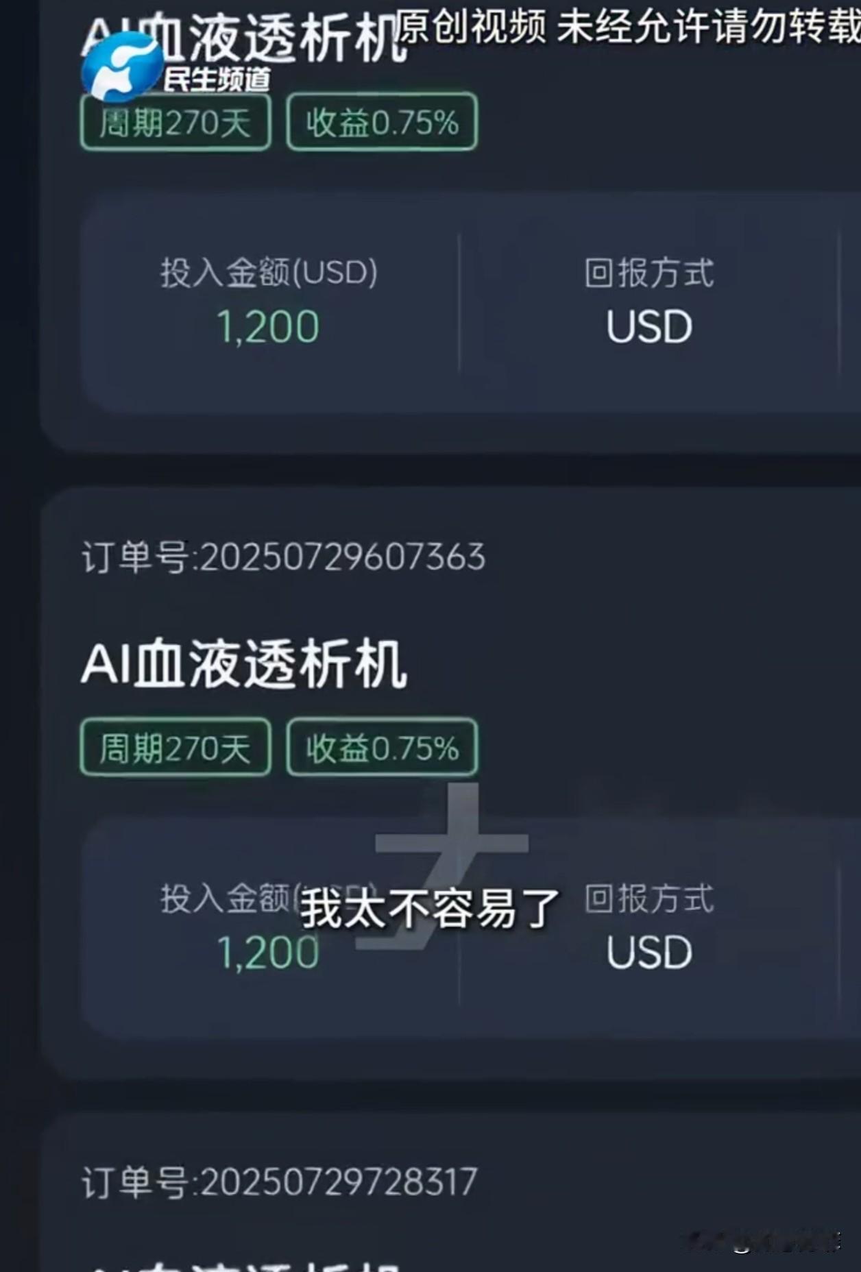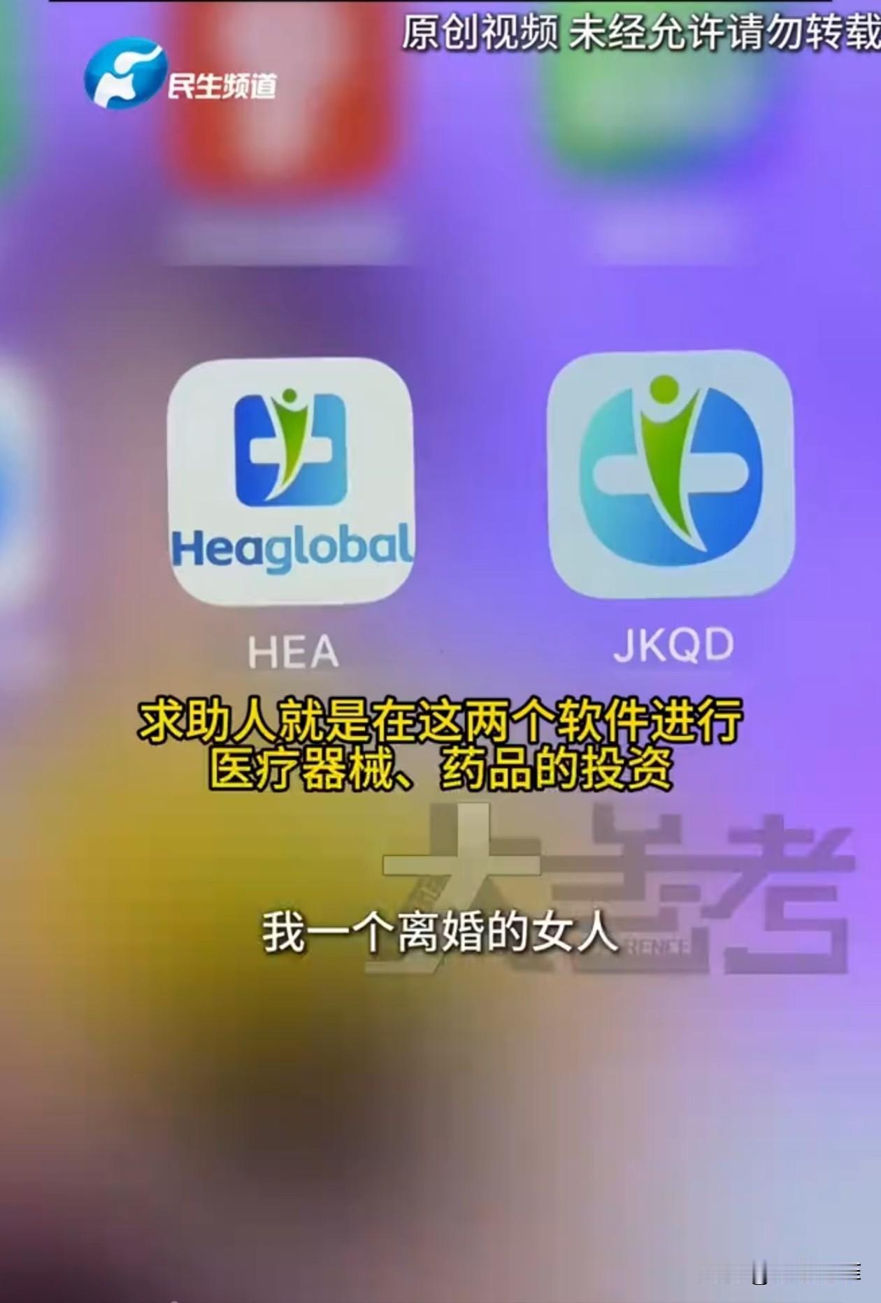 河南,女子一个人带俩儿子,却拿出50万全部积蓄做投资,家里人不让女子投,女子当时非要投,结果现在软件关闭,血本无归。 离婚后的女子,一个人拉扯两个儿子,打工辛辛苦苦攒下了50万。 后来她在小区里碰到有人送鸡蛋和纸巾,还邀请去听“健康讲座”,就这样接触到了一个叫“健康启迪”的投资项目。 项目介绍人说,这个项目是做医疗相关的,只要医院不倒闭,就一直有收入,还承诺回报率很高,年化超过10%。 刚开始女子还有点犹豫,但对方不光给她送体检套餐,平时还上门关怀,甚至帮着接送孩子。 更让她动心的是,头两个月投资后,利息真的准时到账,身边还有人晒收益截图,说自己投几万,一个月就赚了几千。 最后女子架不住诱惑,把50万全部投了进去。结果没过多久,她用来投资的“健康启迪”APP突然打不开了,之前承诺的提现也根本提不出来。 她联系客服和当初拉她投资的人,发现根本联系不上,之后更是直接被拉黑了,她这才意识到自己被骗了。 女子现在后悔不已,50万是全部家底,现在不仅自己生活成问题,还担心孩子的未来,觉得当初就该听家人的劝说。