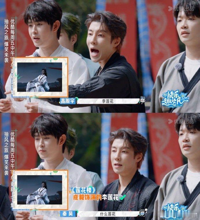 秦昊这老花眼没谁了,玩认角色名游戏,把成毅的绝美李莲花叫陈坤,旁边人都急死了,我也跟着慌,惩罚昊哥看李莲花的戏,下次别错!