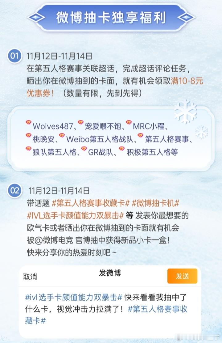 再推一波IVL2024夏季赛赛事收藏卡,点链接直接开抽。这波依旧是微博独家首发,并且不到四小时就卖了13000+单看图二是卡面预览,参加图三活动还有机会获奖,哪怕不抽也能参加,万一呢