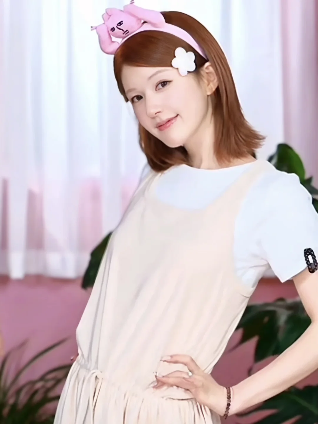 粉色连衣裙,优雅气质,镜前自拍,美不胜收!