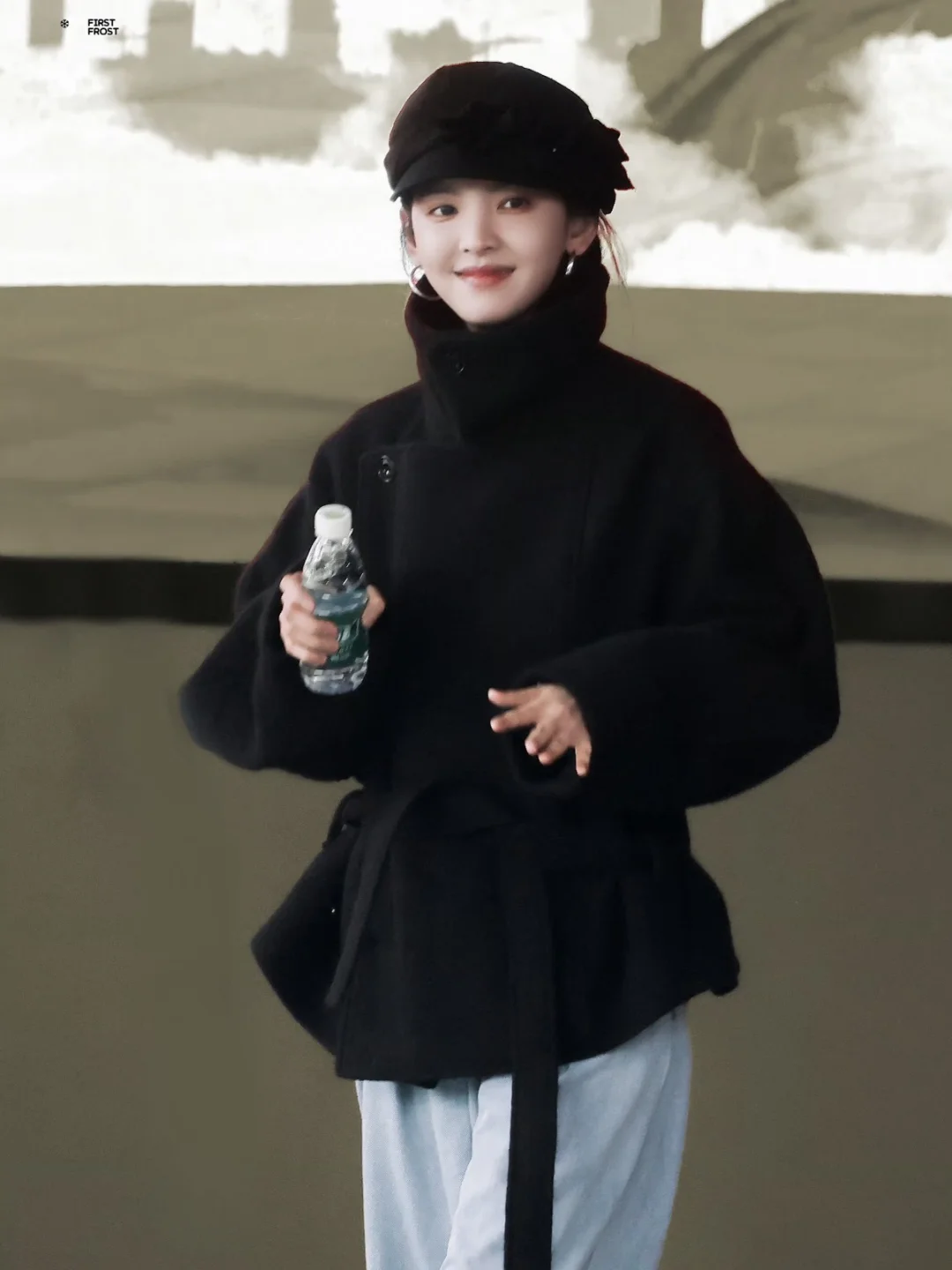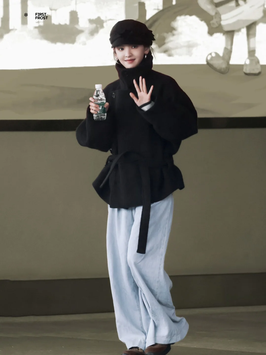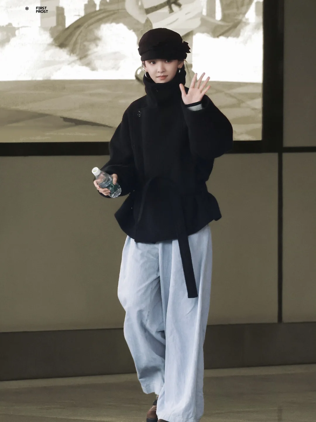 章若楠这套穿搭也太会了吧~ 黑色马术帽+短款束腰大衣,配浅色牛仔裤和棕色运动鞋,甜酷平衡得刚好,甜美感直接溢出屏幕!