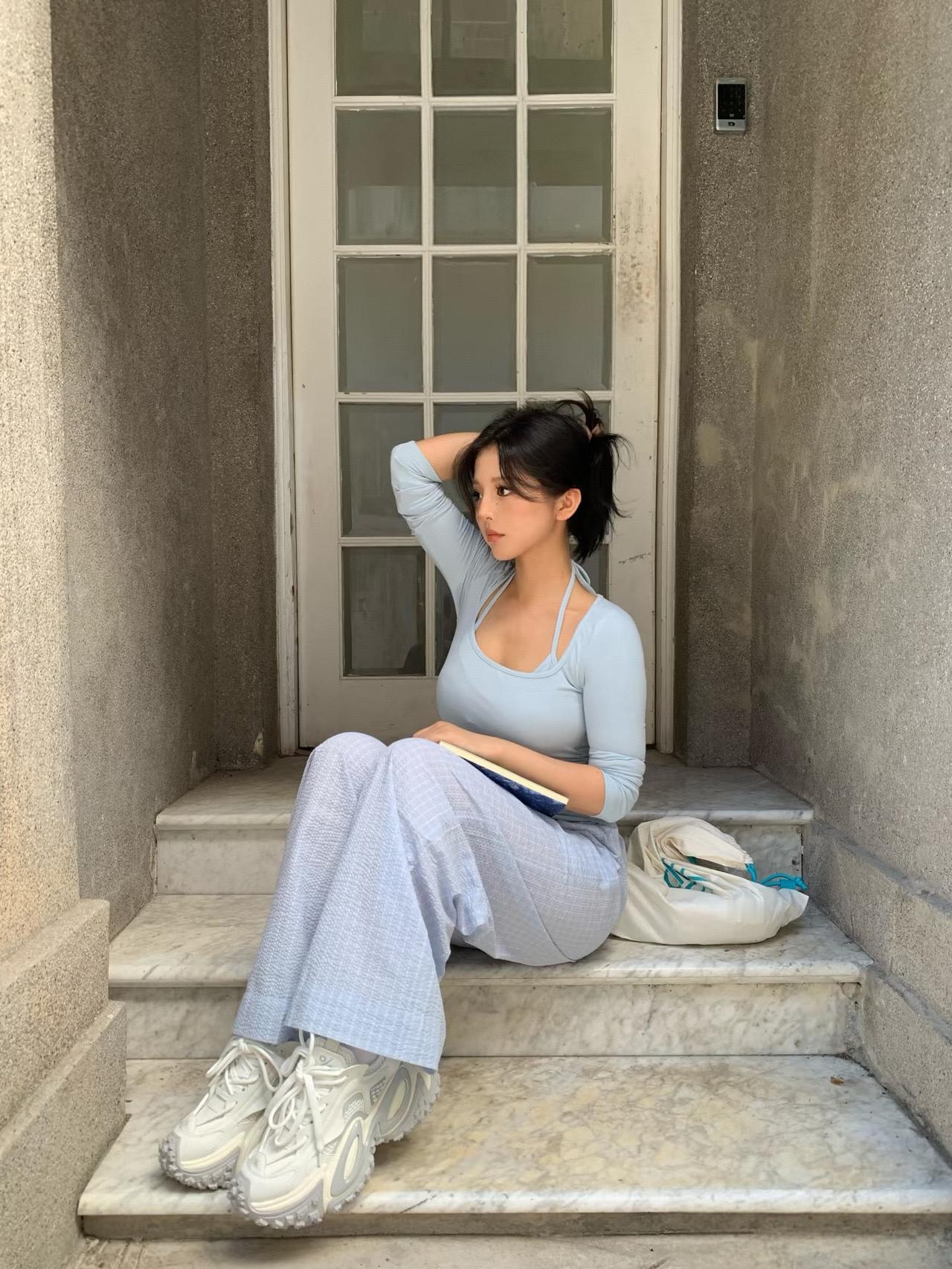 夏日想清爽出行,蓝白搭配必须安排上!蓝衬衫配小白裙,甜妹氛围直接拉满。去海边,
