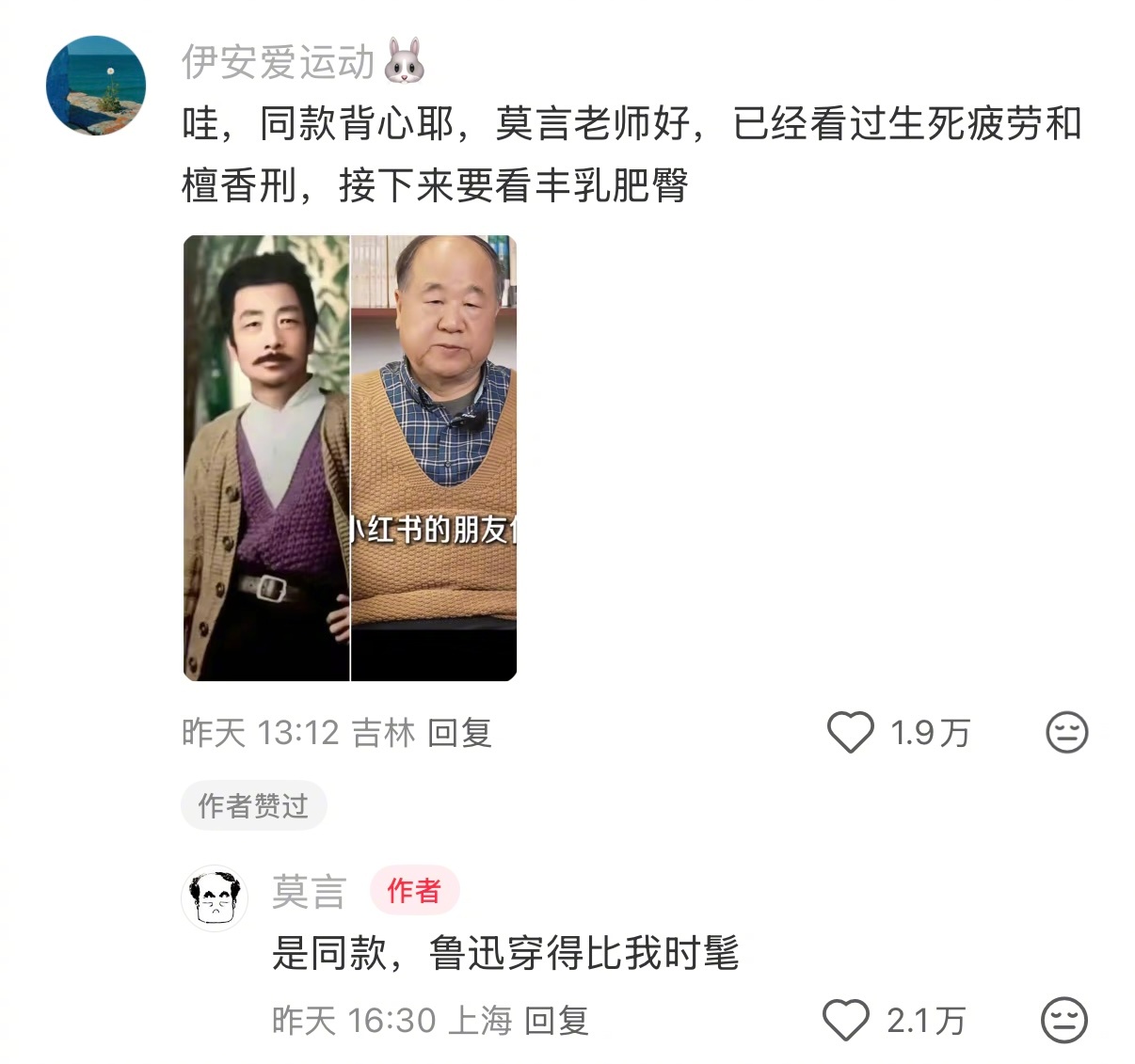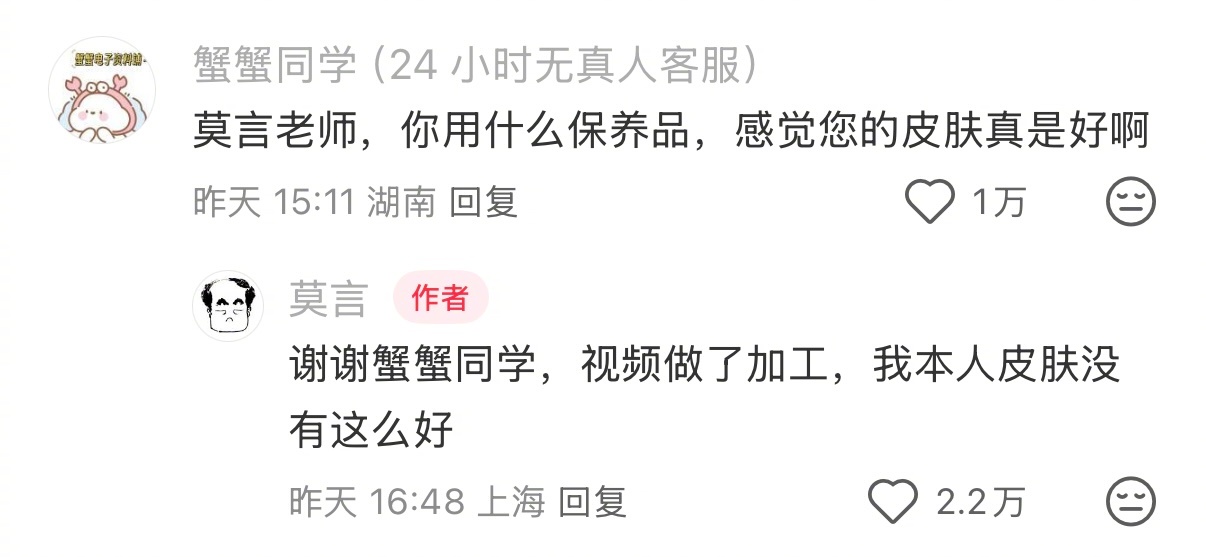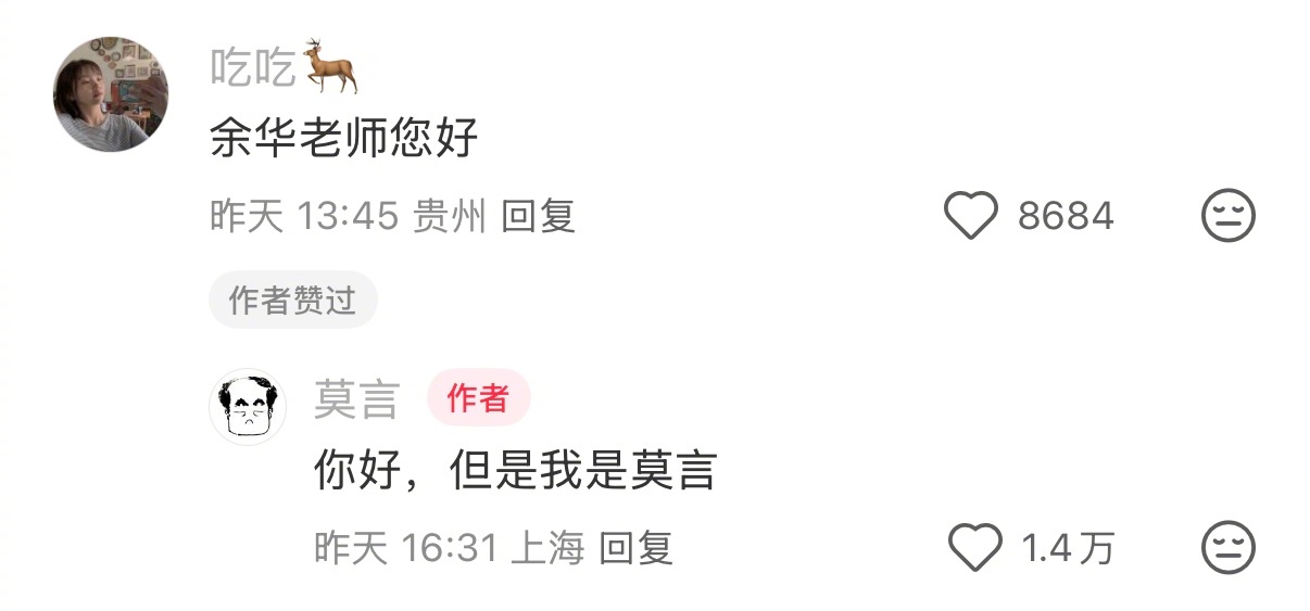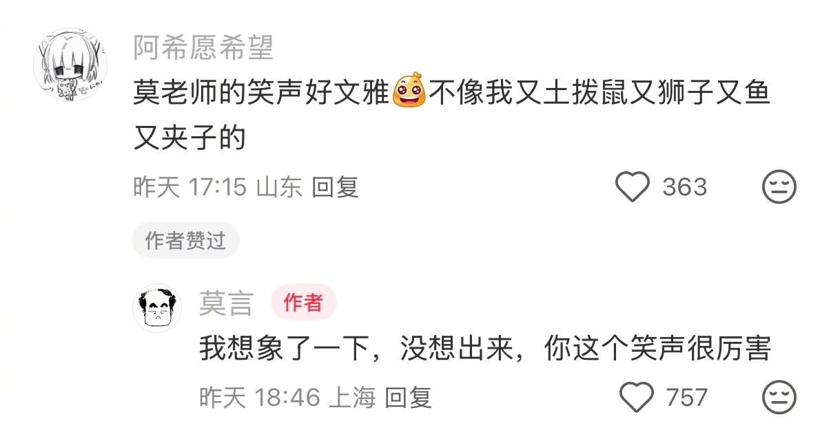 哈哈哈哈哈求你们都来看莫言老师的神回复!每条给小女子笑得亚比囧架架💅《但是我是