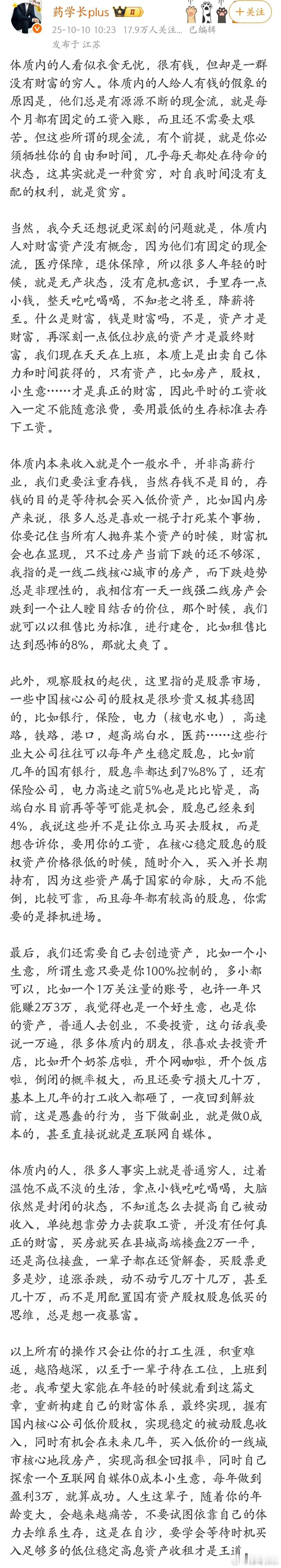 体质内的人看似衣食无忧,很有钱,但却是一群没有财富的穷人。