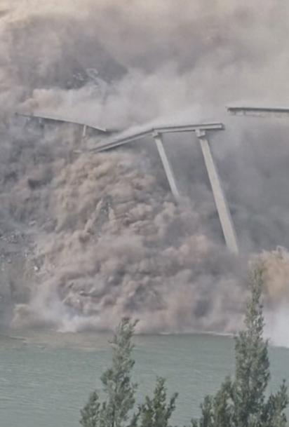 阿坝州双江口红旗桥引桥为何垮塌?这可是今年1月刚修建的新桥。官方:已成立专项工作组,原因尚需进一步核查 前几天刷到一段视频,四川马尔康那边一座桥垮了,足木足河上空一下子冒起好大的烟尘,桥体往下坠的时候,看着心都跟着悬着。 后来才知道,这是红旗特大桥,今年1月刚合龙,到11月11号下午塌的时候,也就用了10个月。 最开始看视频还纳闷,好好的新桥怎么说塌就塌? 直到后面看到官方消息才明白,不是桥的问题,是旁边山体出了事。 不过这事儿得慢慢说,先讲讲塌桥前一天发生的事——11月10号下午3点多,有人在国道317线K381+030米的地方,也就是桥右边的山体旁,发现不对劲。 那会儿山体已经明显变形了,路面和坡上还裂了缝,最宽的地方能有10厘米,离桥的桥台就30米左右,看着就危险。 发现这情况后,当地没耽误,公安、交通的人很快就到了现场,晚上11点前把滞留的车全疏散了,还立了警示标志。 阿坝州的公安局和交通局连夜发了管制通告,远的地方设了3个分流点,近的设了2个拦卡点,所有车都不让过,还跟周边县联系好疏导交通。 也多亏了这些准备,11号下午4点多桥塌的时候,没伤着人。 当时山体突然变形更厉害了,石头土块涌下来,冲毁了路基和一部分桥,130米左右的桥体跟着垮了,滑坡下来的土石料就有300万立方米。 网友拍的视频里,桥坠进河里的烟尘特别大,好在桥上早没人没车了。 这座桥还有个名字叫“云中之桥”,本来是要把马尔康、金川县、壤塘县串起来的,挺重要的一条路,就这么没了,挺可惜的。 而且它在双江口水电站库区里,今年5月才第一次蓄水,有人猜水位涨落可能影响了山体稳定,但这只是猜测,具体得等专业的人查。 现在现场也没闲着,专业人员装了监测设备盯着山体,还把库区周围的山体都查了一遍,怕再出意外。 大家最关心的路啥时候能通,官方说暂时没法预估,只能绕路走壤塘县、阿坝县、红原县去成都。 后来官方也出了明确的调查结果,说垮塌的直接原因就是山体滑坡:库区地质环境变了,桥右边的山体滑坡,挤压得桥梁边坡裂了缝,裂缝越扩越大,破坏了桥的基础支撑,最后桥才塌的。 这个结论跟之前发现的边坡裂缝、山体变形也能对上。 对此,有网友表示,有网友说 “幸好提前一天发现裂缝管制了,不然后果不敢想,这波应急处置得夸”,觉得及时疏散没伤人太关键。 也有人感慨 “才用 10 个月的新桥就没了,还是云中之桥,可惜归可惜,但官方说是山体滑坡致边坡裂缝,库区地质确实复杂”。 还有网友关心绕路问题,“本来是串三地的路,现在得绕壤塘、阿坝这些县,不知道啥时候能恢复”。 也有人提 “水位涨落会不会影响山体?希望专业部门查清楚深层原因,给后续建桥提个醒”,整体都在关注安全和后续进展,没太多情绪化吐槽,都挺理性的。 其实这事也给其他地方提了个醒,经常有地质灾害的地方,安全防护真不能马虎,提前发现险情、赶紧处理,能避免不少麻烦。 后面要是有道路恢复、山体治理的消息,官方应该也会及时说。 那么到最后,你们怎么看呢? 如果各位看官老爷们已经选择阅读了此文,麻烦您点一下关注,既方便您进行讨论和分享,又能带来不一样的参与感,感谢各位看官老爷们的支持!