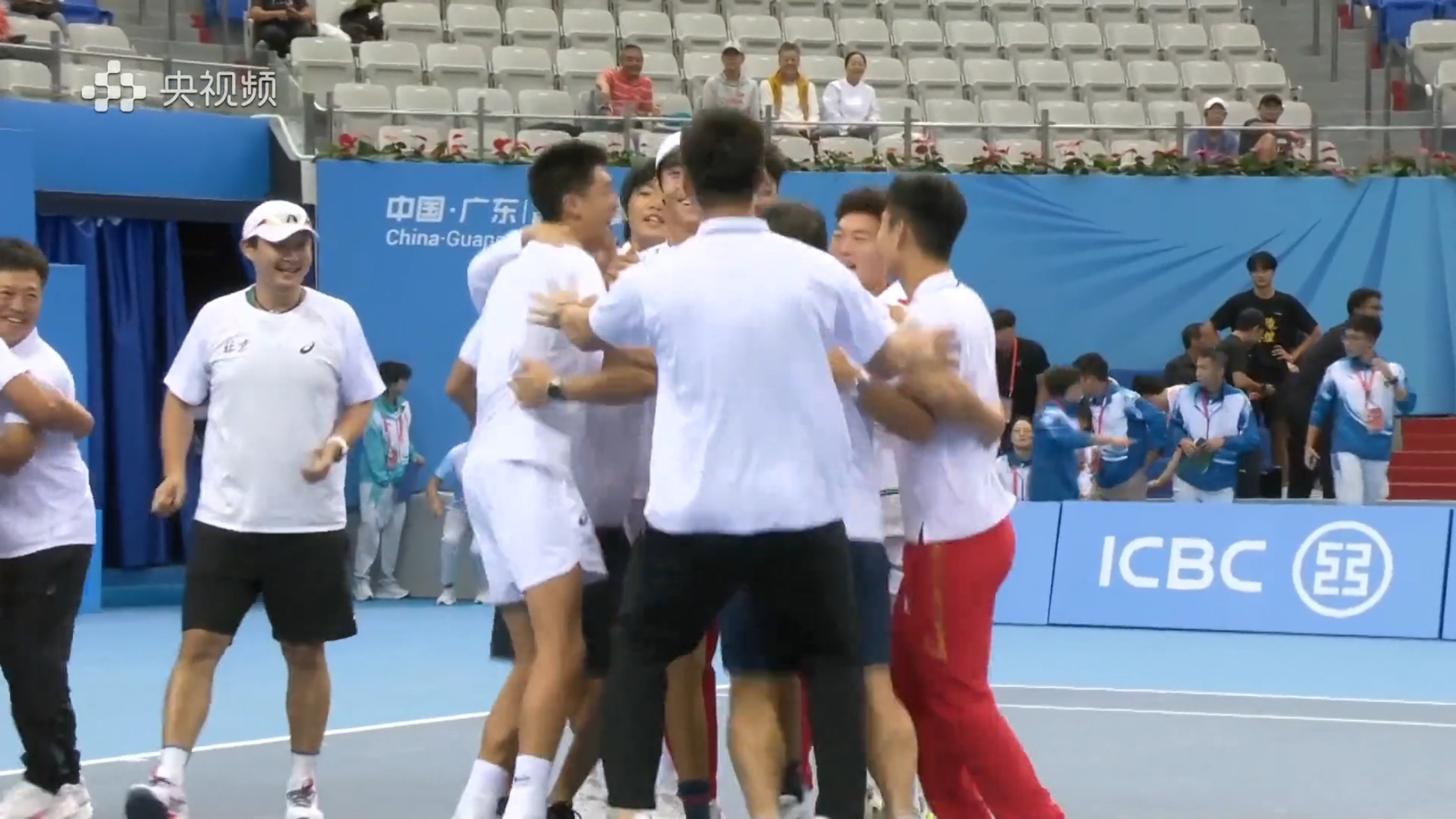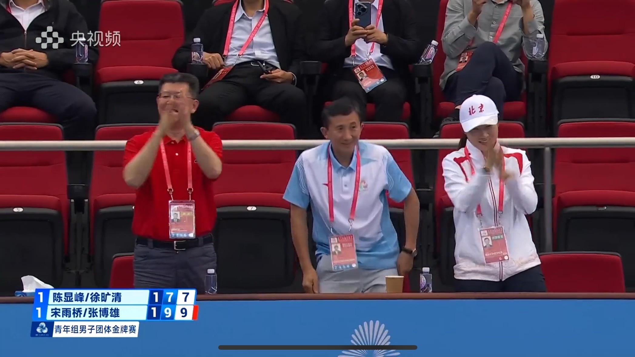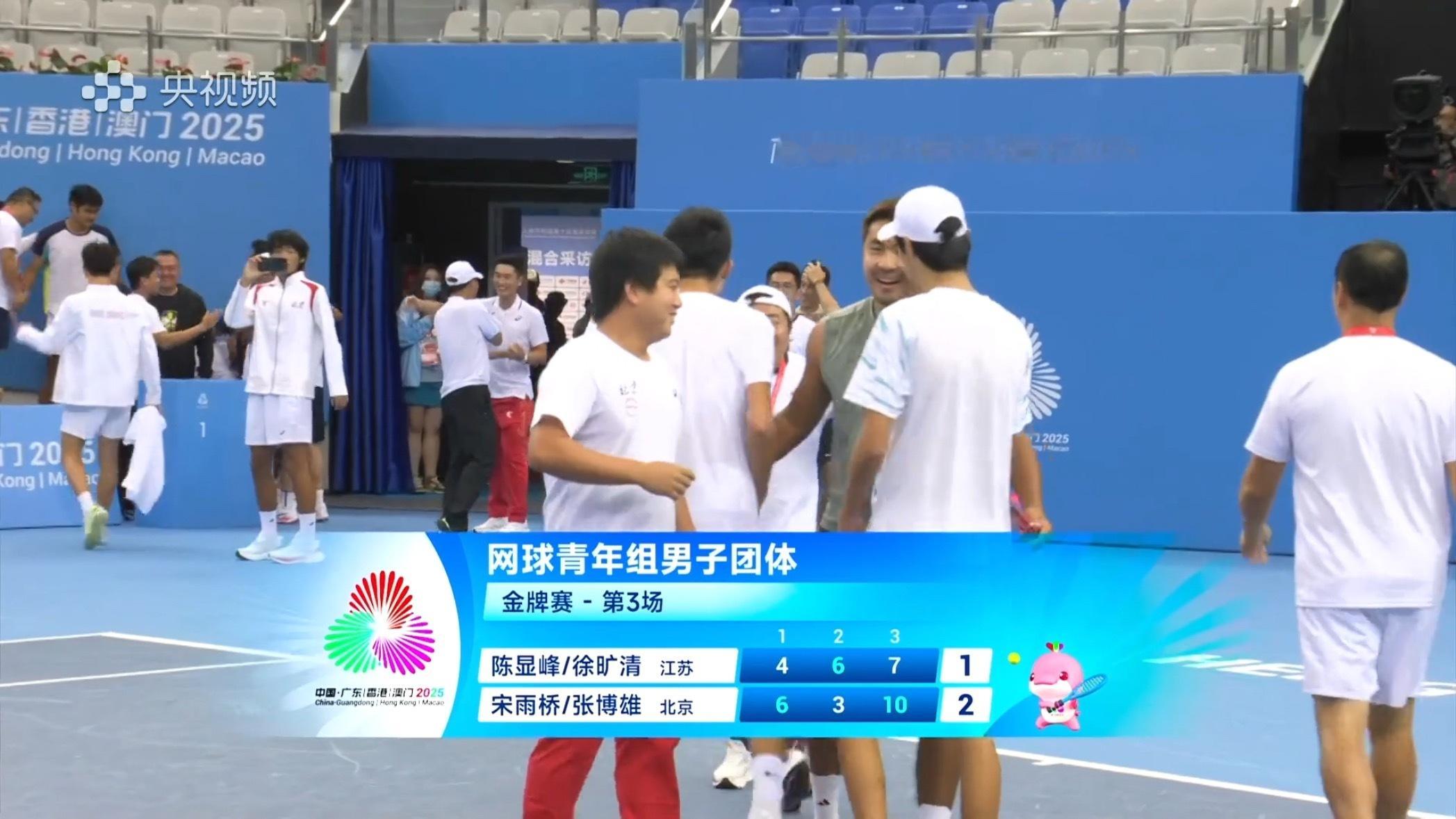 北京队宋雨桥/张博雄6-4、3-6、10-7险胜陈显峰/徐旷清。之前一单北京队商竣程击败唐锦鹏,二单江苏队胡佳战胜齐洪瑾,最终北京大比分2-1江苏,拿下全运会青年男团冠军🏆!