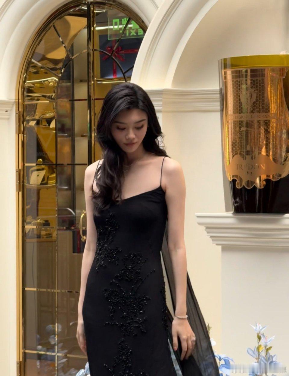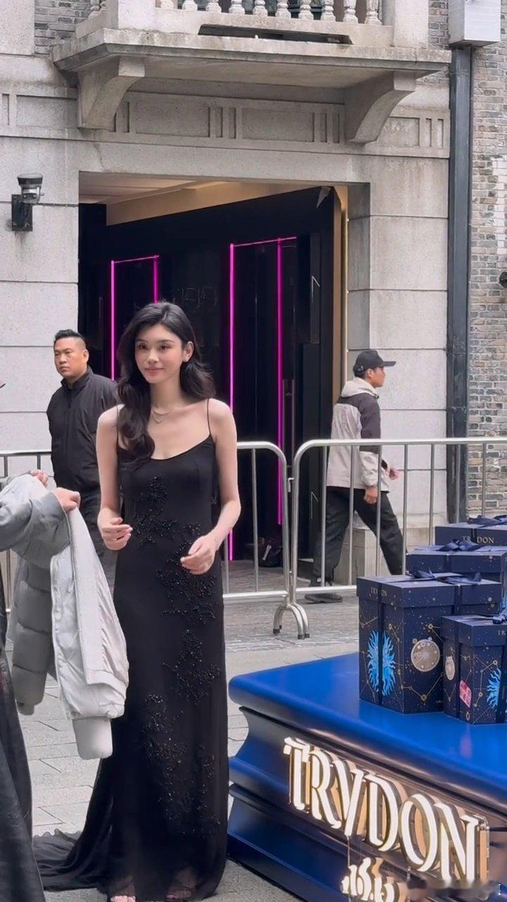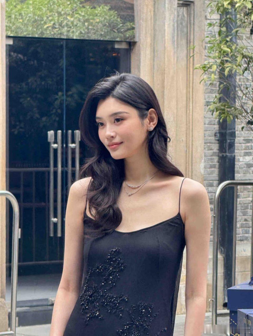 超模生图状态绝了!吊带黑裙配粤语,又美又有实力