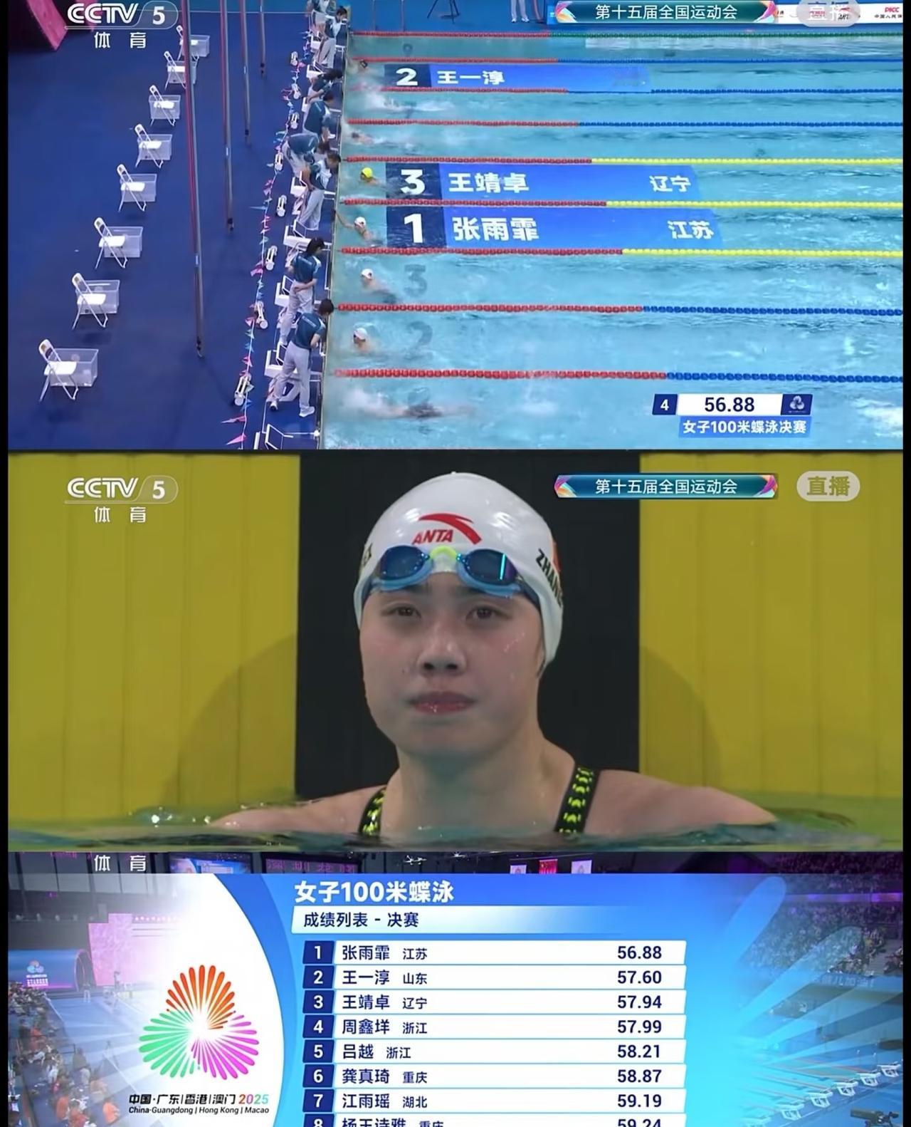 蝶后张雨霏56.88蝉联全运会100蝶冠军。 年轻一辈断层了,没有人能够接上棒,男女项目有几项都是。老将虽然国际上很难站上领奖台了,但国内仍然能打。