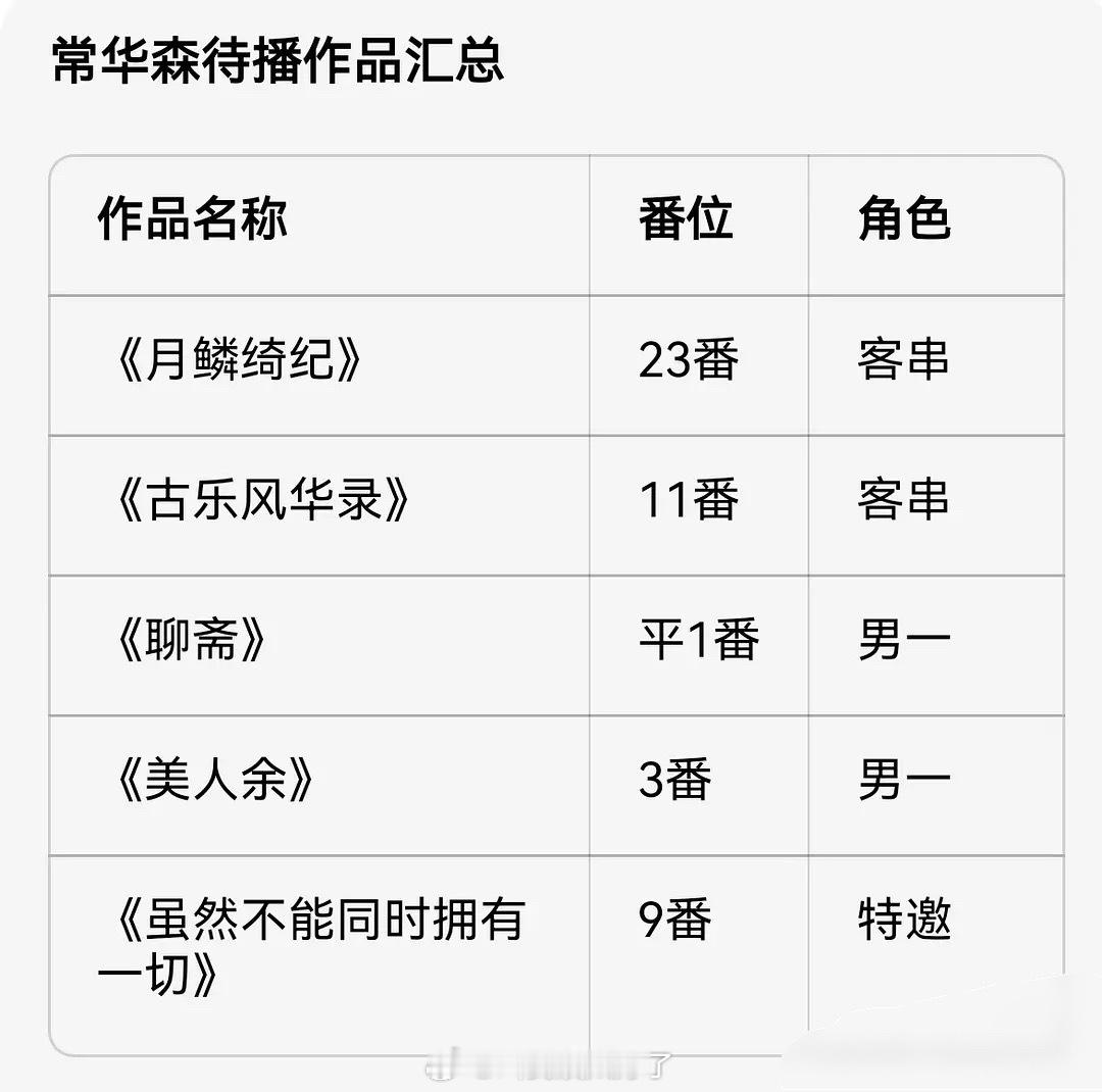 常华森的已播作品和待播作品一览,这个资源算是还不错吗?
