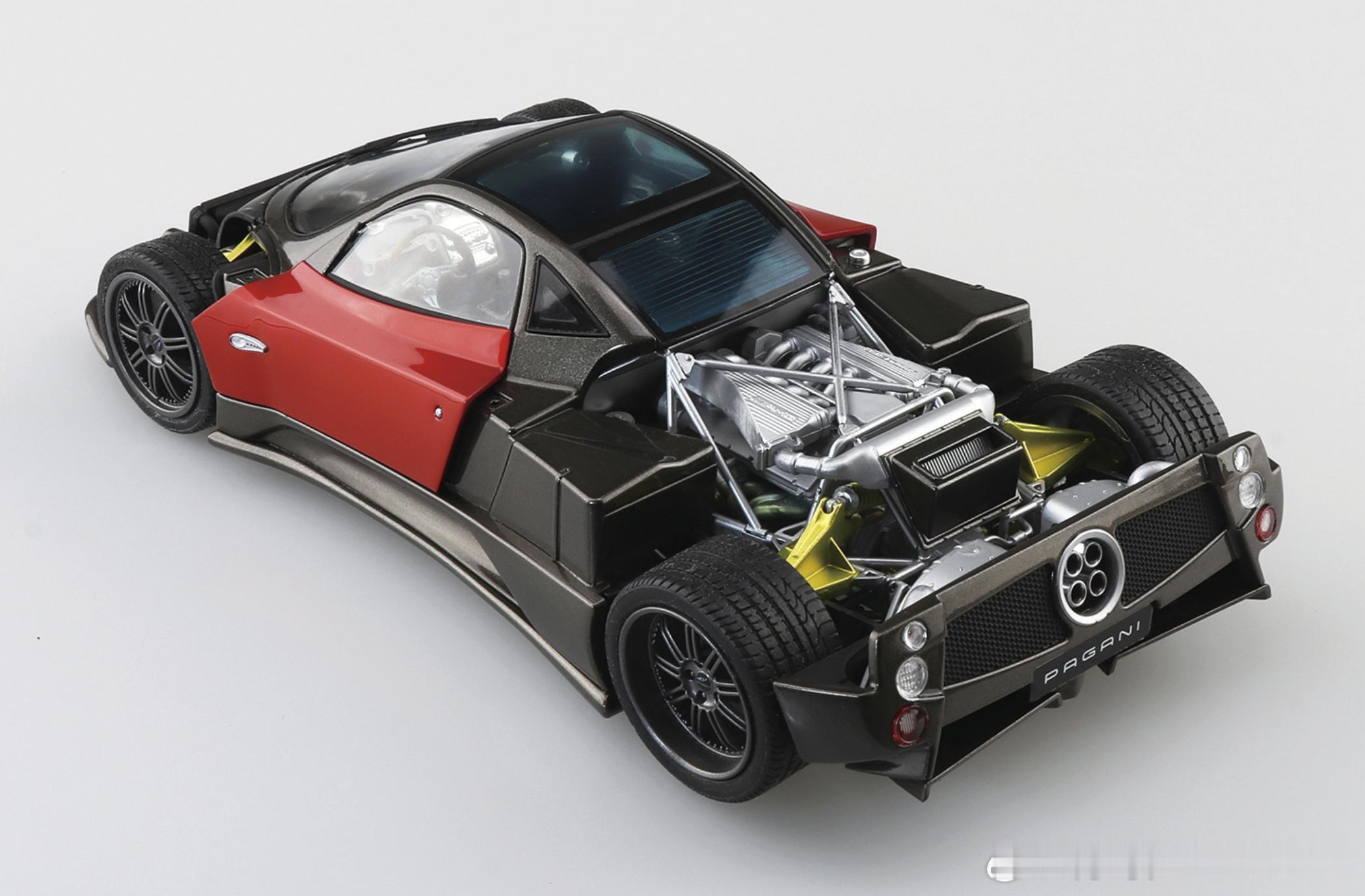 十一月新品1/24 帕加尼 Zonda F(2005)Zonda F 于 2005 年限量生产 25 台,是对初代 Zonda C12 进行大幅改良后的终极进化版,无论是动力、外观还是内饰,都堪称 Zonda 系列的集大成之作。“F”取自传奇车手 胡安·曼努埃尔·方吉奥(Juan Manuel Fangio) 的首字母,搭载 AMG 制造的 7.3L V12 自然吸气引擎,最大功率 602 马力,0–100km/h 加速仅 3.6 秒,最高时速可达 345km/h。模型以极高精度重现 Zonda F 的机械结构与外观细节:• 追加 F 专属零件• 精细还原引擎、悬挂及车架结构• 前后车罩组装后可拆卸展示• 附窗框遮盖贴纸