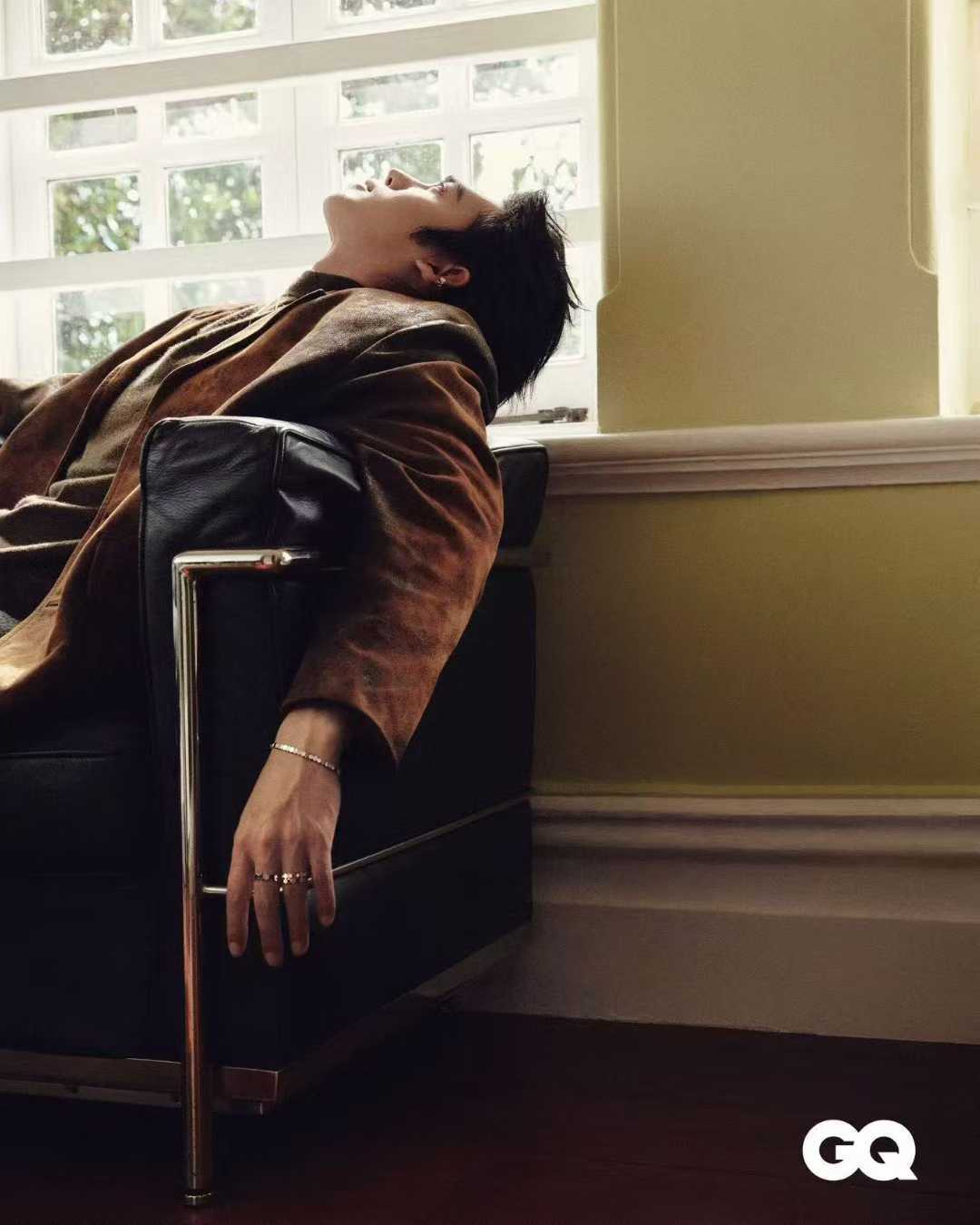 于适的《GQ》HK MOTY2025 11月刊封面,这套以皮革与木质为主,硬派与温软兼备,沉静专注,匠心独运。