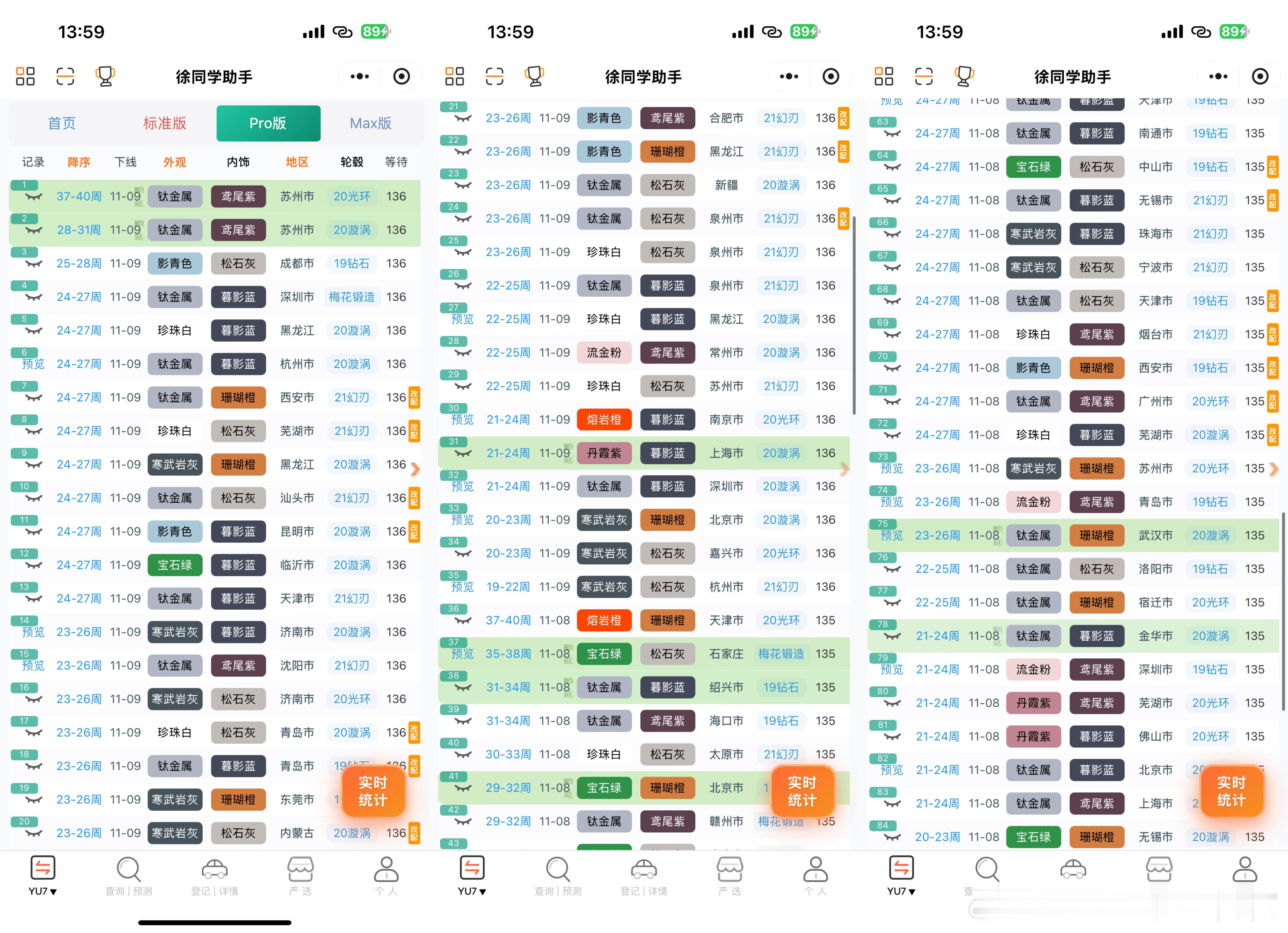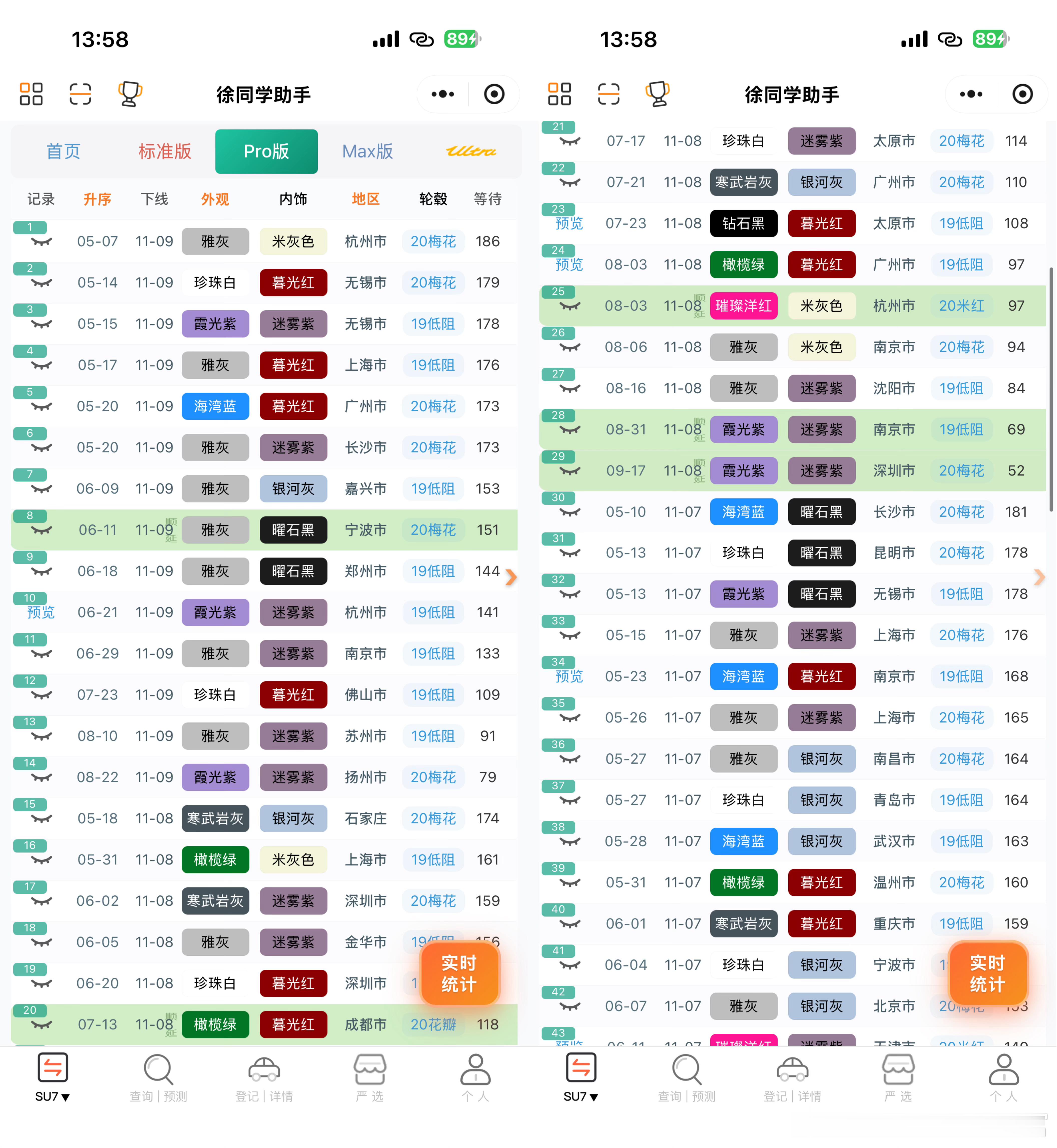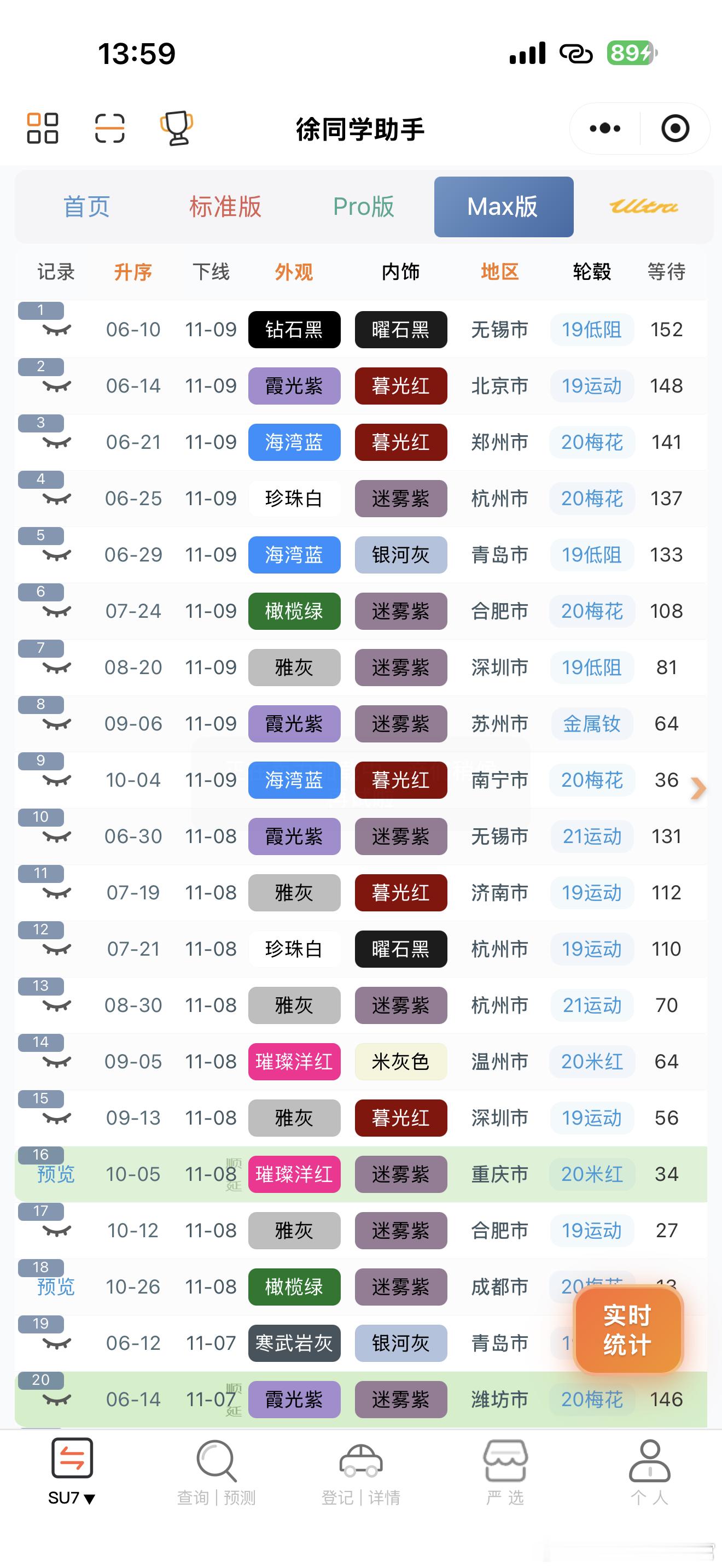 小米汽车(11月9日)下线实况今天是【小米·中国汽车耐力锦标赛】,羡慕京津冀的朋友可以近距离感受赛车文化!SU7改款应该是在YU7配置的基础上再来个升级,传统加量不加价🌀YU7(据不完全统计)合计157台1️⃣标准:下线82台,22周还有不少没下的,大部队接近223-24了,运气好的大周数也会下线2️⃣Pro:下线49台,大部队23-24周,有些21周下线的是跳周后的周数3️⃣Max:下线26台,大部队26-27周(未跳周),跳周后的以24-25周为主🌀SU7(据不完全统计)合计47台1️⃣标准:下线22台,大部队5月以后了,基本在按照顺序下线2️⃣Pro:下线16台,下线不多,但平均等待时间才100天左右3️⃣Max:下线9台,订单确实少了很多,可max才是性价比最高的车型4️⃣ultra:因为热爱所以拥有更多关于小米汽车的最新资讯和深度解析,请参考【米车派】~