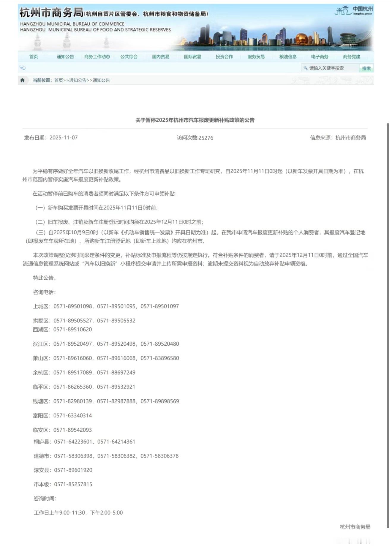 今年浙江各地的汽车置换补贴、报废补贴都陆续暂停了。我的尚界H5 也算是赶上趟了