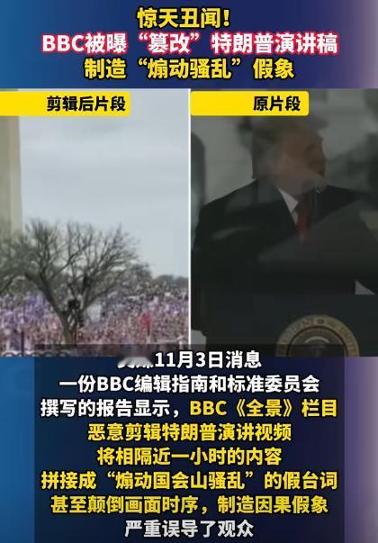 还是流氓有办法治流氓! BBC高层大血崩!特朗普反手10亿索赔,“假新闻”帝国这下玩砸了。 11月10日,英国广播公司一天之内失去两位顶层人物——总干事蒂姆·戴维和新闻CEO黛博拉·特纳斯双双宣布辞职,这不是普通的人事调整,而是一次在巨大压力下的被动退场。 就在他们离职的次日,来自白宫的律师函直接送到BBC新任董事长萨米尔·沙阿的办公桌上,信件要求BBC立刻撤下一部纪录片,对特朗普公开道歉,并赔偿高达10亿美元的损失,否则法庭见。 引发这场风暴的,是去年美国大选前一周播出的纪录片《特朗普:第二次机会?》。在描述2021年1月6日国会山事件时,纪录片删掉了特朗普讲话中“以和平的、爱国的方式”这样的关键表述,却保留了“我们拼命战斗”一句,并将两段间隔近一小时的话硬拼在一起。 这样的剪辑让电视画面看起来像是特朗普在煽动支持者采取暴力行动,直接给观众传递了完全不同的意思。这种刻意处理被指是为了在选举前影响公众判断。 特朗普团队能准确掌握剪辑细节,是因为BBC内部有人将一份备忘录泄露出来,文件清楚记录了制作组在编辑室中删改、拼接讲话的全过程,证实这并非疏忽,而是经过讨论的有意为之。 这份材料成了特朗普律师手中最致命的证据,也让事件性质从“新闻偏见”升级成了“新闻造假”。 有了备忘录,加上十亿美元的诉讼威胁,BBC两位高管的辞职自然就不难理解了,尽管他们在声明中用含糊的词汇暗示是为了“激烈的新闻争议”或“避免损害机构”,但明显是想避开对造假行为的直接承认。 实质上,他们是因为事件已无法收场、又惹上刚刚赢得大选的特朗普,不得不甩锅走人。 对于特朗普来说,立案索赔远不只是为了钱,这更像是一场针对媒体的震慑行动。BBC是全球知名媒体,对它下手,就是在向其他反对派媒体发信号——包括CNN和《纽约时报》。意思很简单:现在的游戏规则要改,你们不再能肆意塑造公众认知。 他要的,是这些曾经批评他的机构低头。这场官司即便最终不拿到赔偿,特朗普也赢了舆论战,只要公众知道纪录片被动过手脚,BBC的信誉就会被持续消耗,每一次媒体报道案件,都是对其公信力的二次打击。 事件同样让英国政府陷入尴尬。BBC是英国形象的一部分,如今被美国总统公开点名造假并索赔天价,英国政府既不能全力护短,也不好完全附和特朗普的批评,两边不好得罪,局面尴尬。 随着诉讼最后期限逼近,BBC面临选择:要么道歉撤片并支付部分赔偿,要么硬扛到法庭。 不论哪种结局,那份内部文件和高管辞职已经将它的信誉钉在了棺材板上,这次不只是一个机构的危机,更让所谓“客观中立”的新闻神话被彻底撕开,让外界看清,在政治面前,那些媒体的立场有多脆弱。
